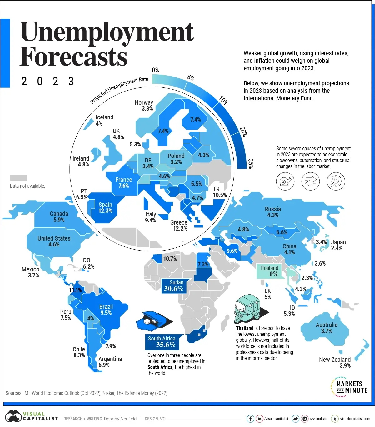 Mapped: Unemployment Forecasts, by Country in 2023