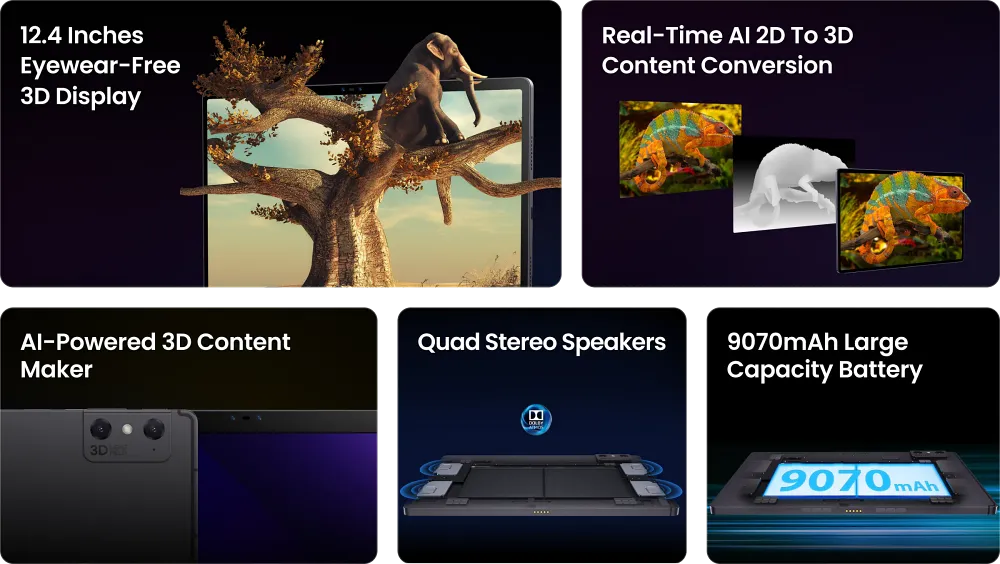 nubia Pad 3D is the only device that lets users: video chat, rent movies, play games, take pictures and video,create text to 3D image with generative AI— all in 3D. It offers rich 3D applications and resources, and the Leia Appstore includes 50+ 3D gam