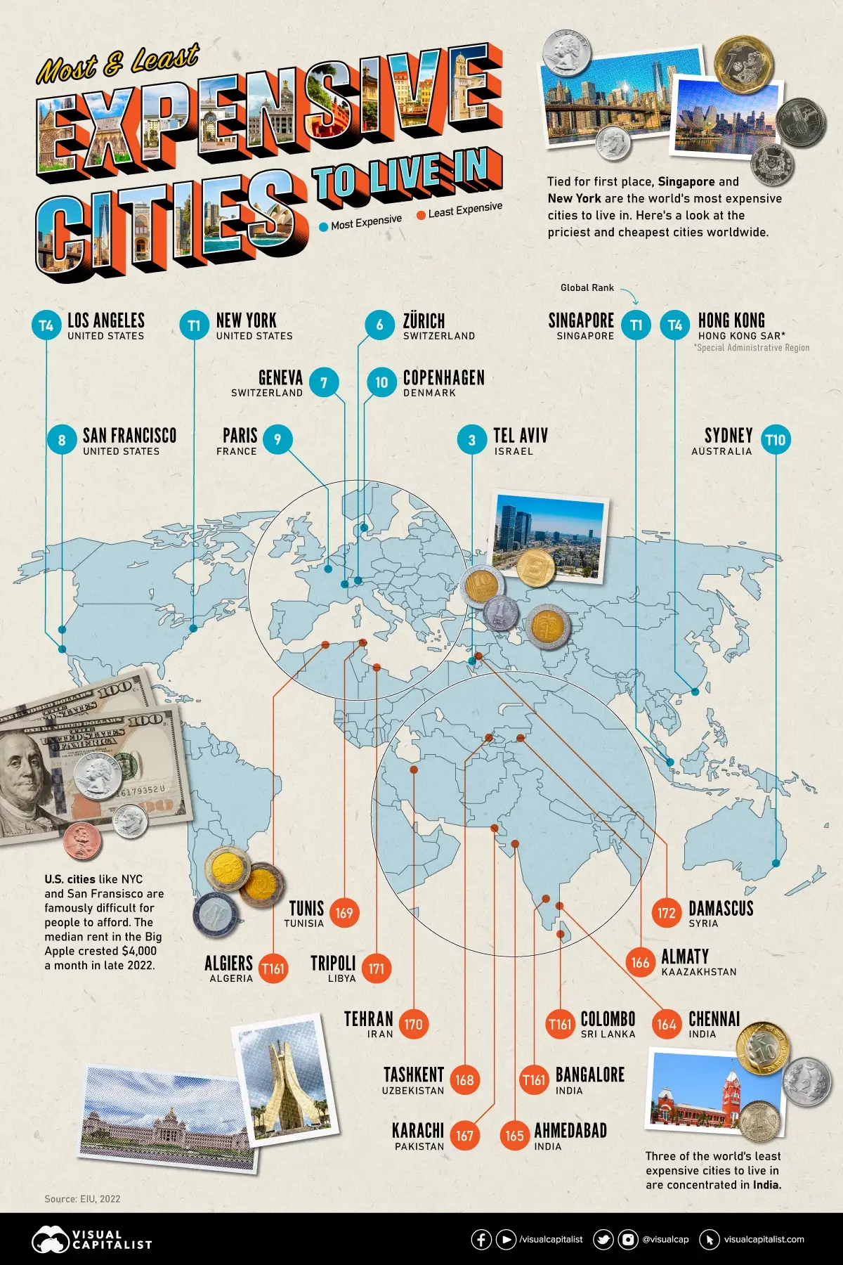 Visualized: The Most (and Least) Expensive Cities to Live In