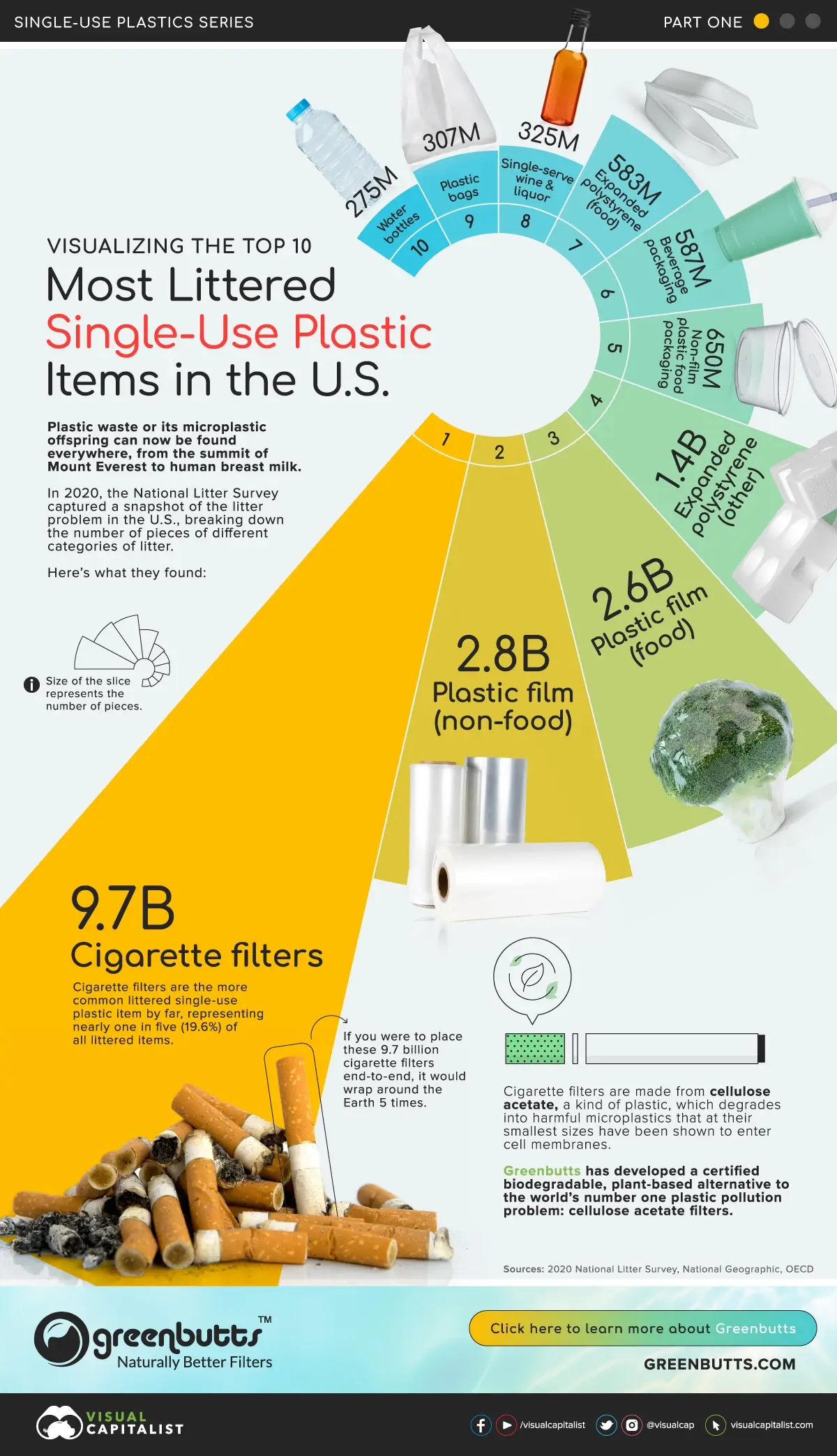 greenbutts์ ์๋ฃ๋ฅผ ๋ฐํ์ผ๋ก VISUAL CAPITALIST๊ฐ ์ ๋ฆฌํ ์ด ์ธํฌ๊ทธ๋ํฝ์ ๋ฏธ๊ตญ์์ ๊ฐ์ฅ ๋ง์ด ๋ฒ๋ ค์ง๋ ํ๋ผ์คํฑ ์ฐ๋ ๊ธฐ๊ฐ ๋ญ์ง ๋ ์ผ๋ง๋ ๋ฒ๋ ค์ง๋์ง๋ฅผ ์๊ฐํ๊ณ ์์ต๋๋ค. ์ฐ๋ฆฌ๋๋ผ๋ณด๋ค ์ฐ๋ ๊ธฐ ๋ถ๋ฆฌ๋ฐฐ์ถ์ ๋๊ฐํ ๊ฑธ๋ก ์๋ ค์ง ๋ฏธ๊ตญ์ ์ํฉ์ด์ง๋ง, ์ฐ๋ฆฌ๊ฐ ๋ฐ๋ฉด๊ต์ฌ ์ผ์ ๋ถ๋ถ์ด ์๊ฒ ์ฃ . ๋ง์ด ๋ฒ๋ ค์ง๋ ํ๋ผ์คํฑ ์ฐ๋ ๊ธฐ 10์๋ ์์๋ณ, 9์๋ ๋น๋๋ด์ง, 8์๋ ํ๋ผ์คํฑ ์ ๋ณ, 7์๋ ํด๋ฆฌ์คํฐ๋ ํฌ์ฅ์ฉ๊ธฐ, 6์๋ ์ผํ์ฉ ์ปต์ด ์ฐจ์งํ์ต๋๋ค. ๋ฐฐ์ถ๋์ด๋ ๋ฐฐ์ถ ์์๋ ์ฐ๋ฆฌ์๋ ์ฐจ์ด๊ฐ ์๊ฒ ์ง๋ง, ์ฐธ ์ต์ํ ๋ฌผ๊ฑด๋ค์ด์ฃ . 5์๋ ์์ ํฌ์ฅ ์ฉ๊ธฐ, 4์๋ ์คํฐ๋กํผ, 3์์ 2์๋ ์์์ฉ๊ณผ ๋น์์์ฉ ๋น๋(๋ฉ)์ด ์ฐจ์งํ๋๋ฐ์. ์์ธ๋ก(?) 1์๋ ๋ด๋ฐฐ ํํฐ๋๊ตฐ์. ๊ฐ์๊ธฐ ๋ด๋ฐฐ ํํฐ๊ฐ ์ ๋์๋ผ๊ณ ํ๊ธฐ์ ๊ทธ ์์ ํ๋ผ์คํฑ ์์ฌ๊ฐ ์ด๋ฏธ ์ฐ์ด๊ณ ์๋ค๋ ์๊ธฐ๊ณ ๋ฒ๋ ค์ง๋ ์ซ์๊ฐ ์ด๋จธ์ด๋งํ๋ค๋ ๊ฒ๋ ์์ง ๋ง์์ผ ํ ๋ฏํ๋ค์.