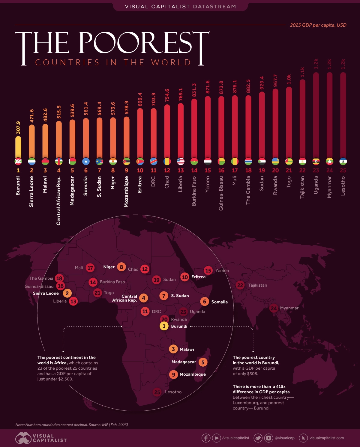 Ranked: The 25 Poorest Countries by GDP per Capita