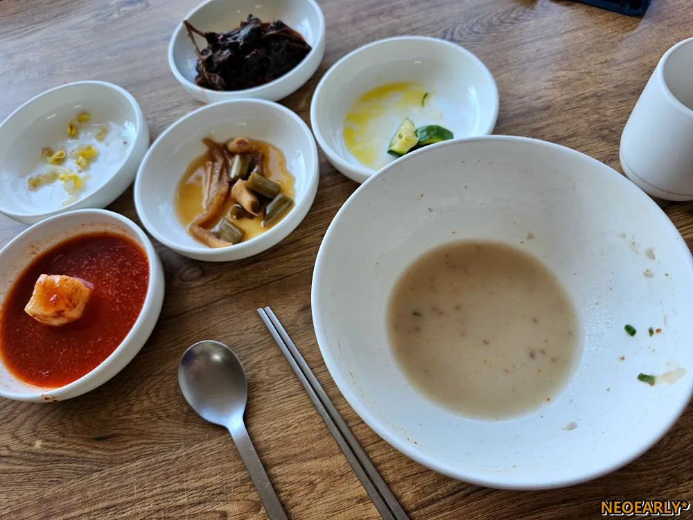 ) ๊ฟฉ ๋ฉ๋ฐ์นผ๊ตญ์(9,000์)๋ฅผ ์ฃผ๋ฌธํ์ต๋๋ค. ๋ณด๋ฆฌ์ฐจ๋ฅผ ํ ์ ๋ด์ฃผ์๋๋ ๊ณง ์ฝฉ๋๋ฌผ๊ณผ ๊น๋๊ธฐ ๋ฑ ๋ค์ฏ ๊ฐ์ง ๋ฐ์ฐฌ์ด ๋์ค๋๊ตฐ์. ๋ ์ผ๋ง์ ์๊ฐ์ด ํ๋ฅธ ํ์ ๋ฌต์งํด ๋ณด์ด๋ ๊ทธ๋ฆ์ ๋ฉ๋ฐ ๋๋ ๊ฐ๋ํ ๋ฝ์ ๊ตญ๋ฌผ๊ณผ ํฌ๋ฐํ ๋ฉ๋ฐ๋ฉด์ด ์ด์ฐ๋ฌ์ง ๊ฟฉ ๋ฉ๋ฐ์นผ๊ตญ์๊ฐ ๋ฑ์ฅํ๊ณ ์.