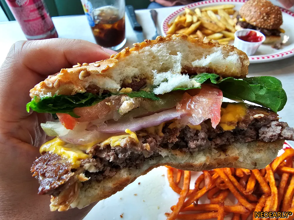 ๋ธ๋ฃจํด๋ฆฐ ์์ค ๋ฒ๊ฑฐ. ์ ์ฒด์ ์ธ ํฌ๊ธฐ๊ฐ ์์ฃผ ํฐ ๊ฑด ์๋์ง๋ง, ์๋ฉ๋ฆฌ์นธ ์น์ฆ, ๋ฒ ์ด์ปจ, ์์์ถ, ์ํ, ํ ๋งํ , ํผํด์ ํ๋ฉ์ด๋ ์์ค ๋ฑ ๋น๊ต์ ๋ค์ํ ์์ฌ๋ฃ๊ฐ ๋ค์ด์์ด์ ์ธ์ง ๋์ด๊ฐ ์ ๋ฒ ๋์ต๋๋ค. ์์ผ๋ก ์ฅ๊ณ ๋จน๊ธฐ์ ์ด์ง ๋ถ๋ด์ค๋ฌ์ธ ์ ๋์ง๋ง, ํ๋ฒ๊ฑฐ๋ต๊ฒ ์์ผ๋ก ์ก๊ณ ๋จน์์ต๋๋ค. ์ก์ฆ์ด ์ ์ ์๋ก ์กฐ๊ธ์ฉ ๋จ์ด์ง๋ ๊ฑธ ๋๋ผ๋ฉด์ ํ ์