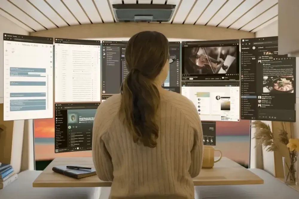 Meet Spacetop: The World's First Augmented Reality Laptop. Carry a 100" laptop in your backpack. A personal and private virtual home office that comes with you - from the couch to the cafe, living the van life, or working on a plane - work in your perfect