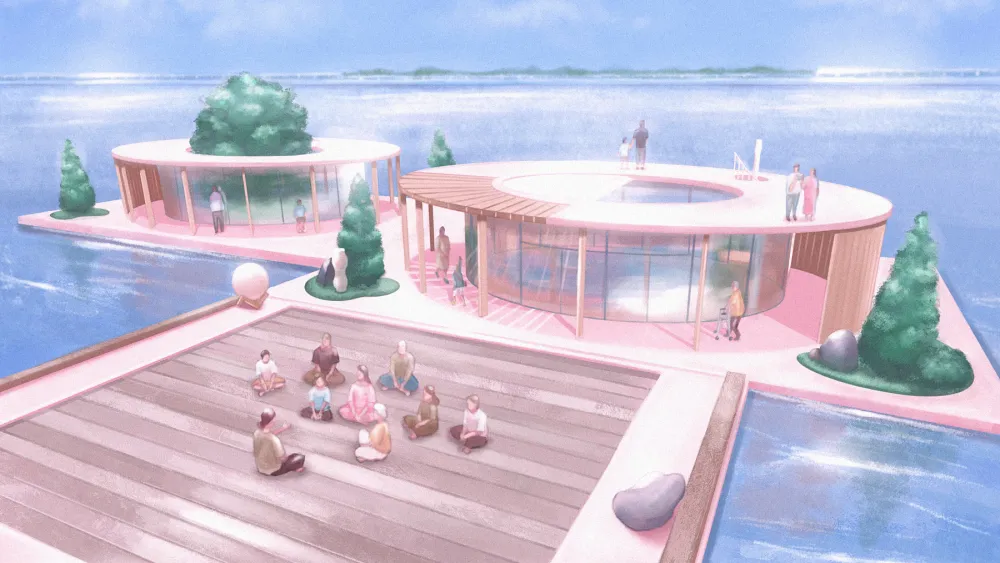 Dogen City is a smart city floating on the sea that integrates food environment,architecture,data,energy,and ocean resource with a focus on healthcare.