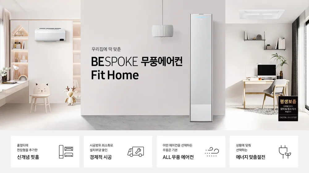 ์ ๋ณด๋ฉด ์ด๋ฏธ ๋ดค๋ ๊ฒ๋ค์ ์กฐํฉ์ด๋ผ ์๋ก์์ ๋ํ์ง๋ง, ์๊ฐ๋ณด๋ค ๋ง์ ์ด๋ค์ ๊ฐ๋ ค์ด ๊ณณ์ ์์ํ๊ฒ ๋ง๋ค์ด์ค ๋ฏํ ๊ตฌ์ฑ์ ๋น์คํฌํฌ ๋ฌดํ์์ด์ปจ ํํ(Fit Home). ์ด ์์ด์ปจ์ ์คํ ๋ํ๊ณผ ๋ฒฝ๊ฑธ์ดํ ์กฐํฉ์ผ๋ก ํ๋ฆฌ๋ 2 ์ธ 1 ์์ด์ปจ์ ์์คํ
