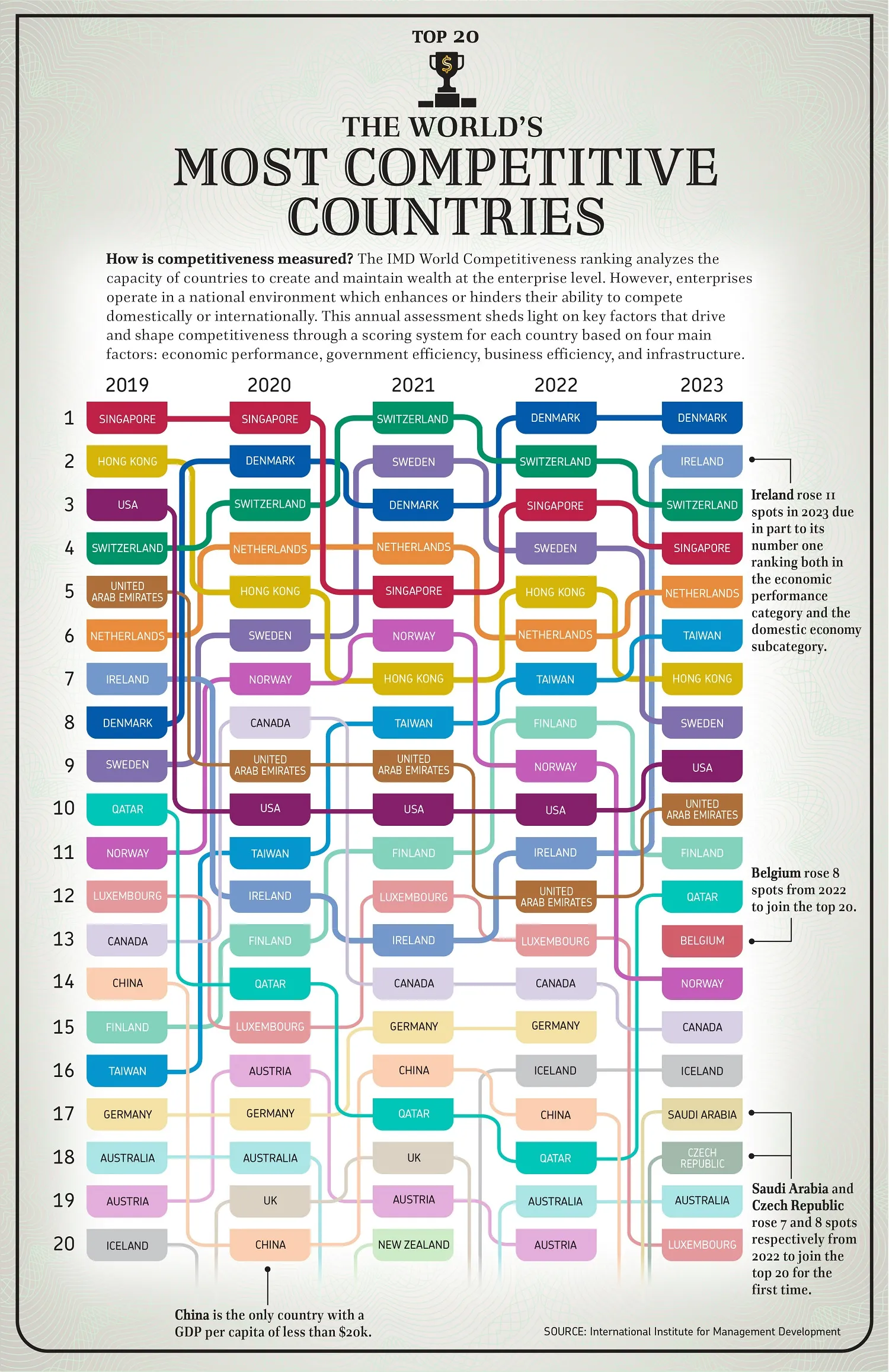 What are the most competitive countries when it comes to business? This visual highlights the top 20 economies over the last five years.