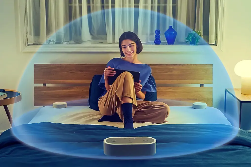 ํนํ ๊ตฌ์ฑ์ธ๋ฐ ํฉ์น๋ฉด 360๋ ๊ณต๊ฐ ์ํฅ ๋ชจ๋๋ก ๋ฐ๋ก๋ ๋ฐฉ ์ ์ฒด๋ฅผ ์๋ฆฌ๋ก ์ฑ์ฐ๋ ๋ฃธ ํ๋ง ๋ชจ๋๋ก ์ธ ์ ์๋ ๊ฑฐ์ฃ . ๋ฉ์ธ ์คํผ์ปค์๋ ํ๋ ์ธ์ง ์คํผ์ปค ์ ๋ 2๊ฐ์ ํจ์๋ธ ๋ผ๋์์ดํฐ 2๊ฐ, ์ฐํ๊ฐ ๋ด์ฅ๋์ด ์๊ณ ์์ฑ ์คํผ์ปค์๋ ์ํ ์ง๋ํ์ด ๋ด์ฅ๋์ด ์๊ณ ์. ๋ธ๋ฃจํฌ์ค๋ก ์ค๋งํธํฐ๊ณผ ์ฐ๊ฒฐํด ๊ด๋ฆฌํ ์ ์๊ณ ํด๋์ฉ์ด๋ ๋งํผ ๋ฐฐํฐ๋ฆฌ๋ฅผ ๋ด์ฅํด ์์ ํ ์ถฉ์ ํ๋ฉด 30์๊ฐ ์ ๋ ์ธ ์ ์๋ค๊ณ ํ๋๋ฐ์. ๊ฐ๊ฒฉ์ 500๋ฌ๋ฌ(65๋ง ์ ์ ๋)๋ผ๊ณ ํ๋๋ฐ~ ์ด๋ฆฌ์ ๋ฆฌ ๋ด๋ ๊ฝค ์ฌ๋ฐ๋ ์ ํ์ด๋ค์. ์์ง์ด ๊ถ๊ธํด์ง๊ธฐ๋ ํ๊ณ ์.^^