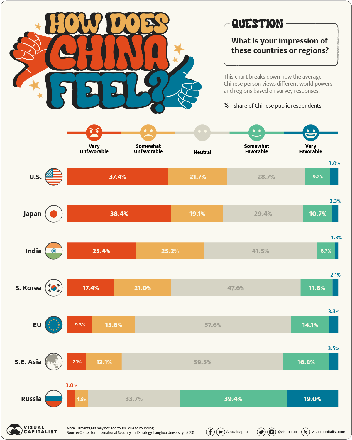What is the Chinese public's view of world powers? This visual breaks down Chinese sentiment towards other countries.