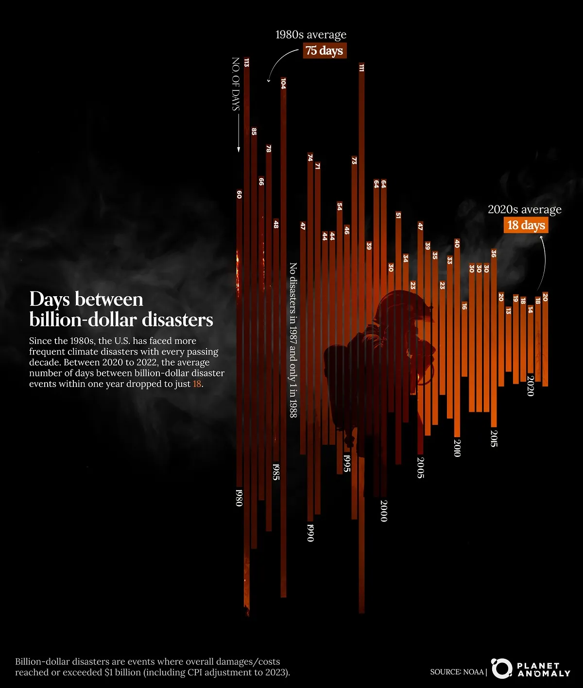 PLANET ANOMALY๊ฐ ๋ฏธ๊ตญ ๊ตญ๋ฆฝํด์๋๊ธฐ์ฒญ(NOAA)์ ์๋ฃ๋ฅผ ๋ฐํ์ผ๋ก ์ ๋ฆฌํ ์ด ์ธํฌ๊ทธ๋ํฝ์ ํผํด ๊ท๋ชจ๊ฐ 10์ต ๋ฌ๋ฌ, ๊ทธ๋ฌ๋๊น ์ฐ๋ฆฌ ๋์ผ๋ก 1์กฐ ์์ ํ์ฉ ๋๋ ํผํด๋ฅผ ์
