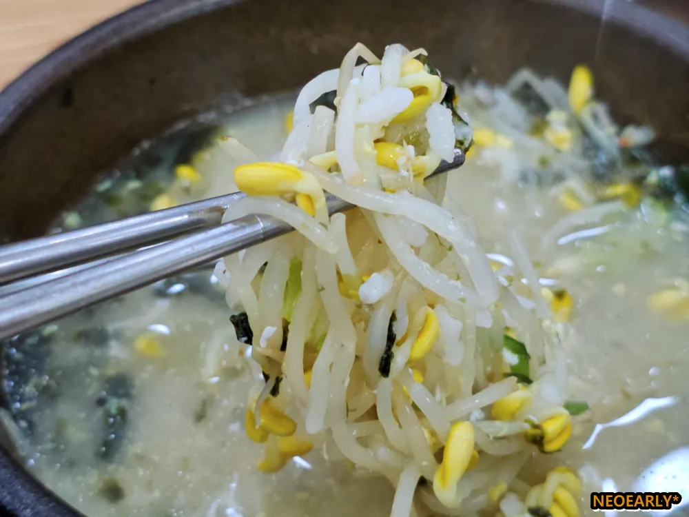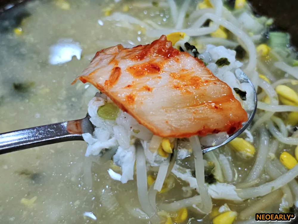 ๊น๋ํ ๊ตญ๋ฌผ๊ณผ ํํ ๋์ ํ์๋ ์์ญํจ์ ์ด๋ ์ ๋ ์ ์งํ๊ณ ์๋ ์ฝฉ๋๋ฌผ, ๊ทธ ์ฌ์ด์์ ์กด์ฌ๊ฐ์ ๋ฝ๋ด๋ ํฐ์๋ฐฅ, ๊ทธ๋ฆฌ๊ณ ๋จน๋ค๋ณด๋ฉด ๋ฐ๋ฐํด์ง ๋ง์ ํฌ์ธํธ๋ฅผ ๋ํ๋ ๊น์น๊น์ง. ๊ณผ๊ฑฐ ๊ฐ์ฑ๋น์ ๋๋ช