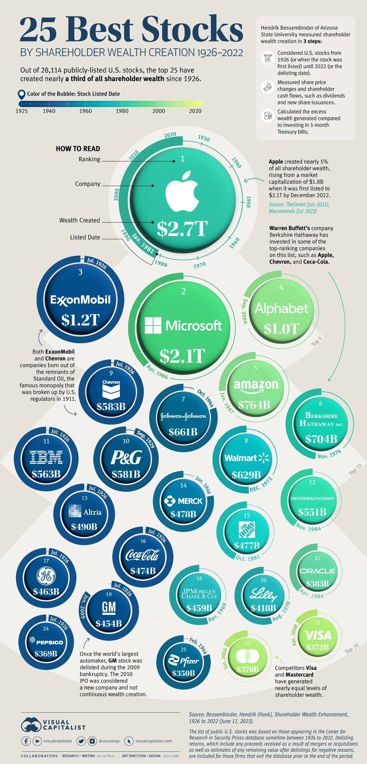 The 25 Best Stocks by Shareholder Wealth Creation (1926-2022)