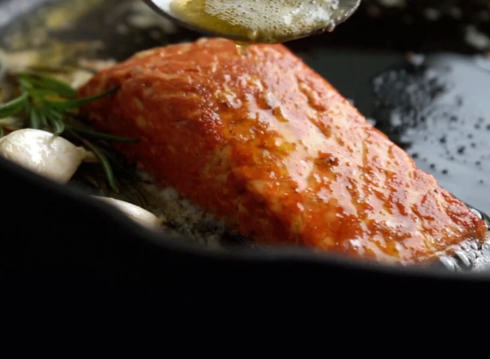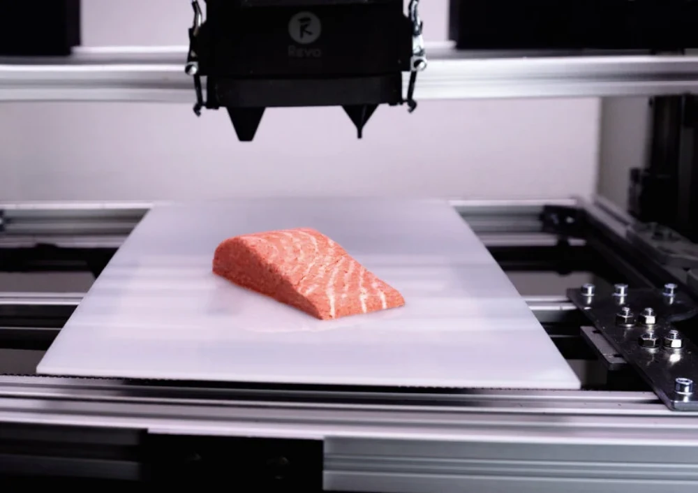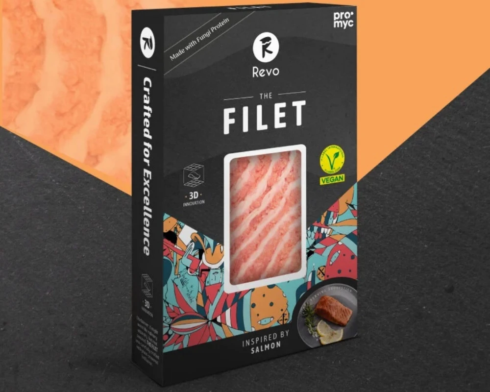 3D printed salmon filet vegan by Revo Foods - Fungi-based 100% vegan Innovation made in Austria ๐ฆ๐น High in Protein High in Omega-3 All 9 Essential Amino Acids Vitamin A, B2, B3, B6, B12 & D2 No sugar, gluten or cholesterol
