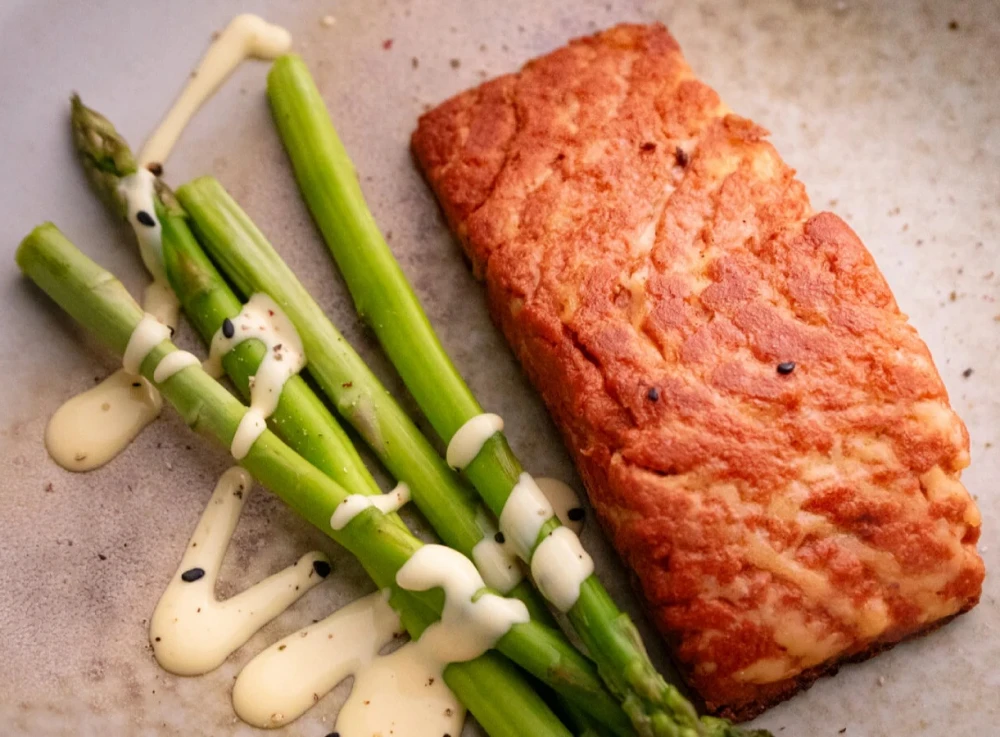 3D printed salmon filet vegan by Revo Foods - Fungi-based 100% vegan Innovation made in Austria ๐ฆ๐น High in Protein High in Omega-3 All 9 Essential Amino Acids Vitamin A, B2, B3, B6, B12 & D2 No sugar, gluten or cholesterol