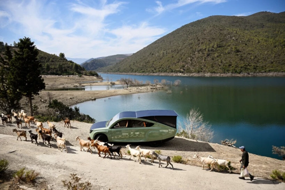 ์ด ๋ชจ์ธ ์๋ผํ ์์ธํธํธ๋ฒค(Solar Team Eindhoven)์ด ๋ง๋ ์ธ๊ณ ์ต์ด์ ์คํ๋ก๋ ํ์๊ด ์๋์ฐจ๋ผ๋ ํ์ดํ์ ๋ฌ๊ณ ์๋ ํฌ๋ฐํ์ง๋ง ๊ท์ผ์ฑ๋ ์๋ ์คํ