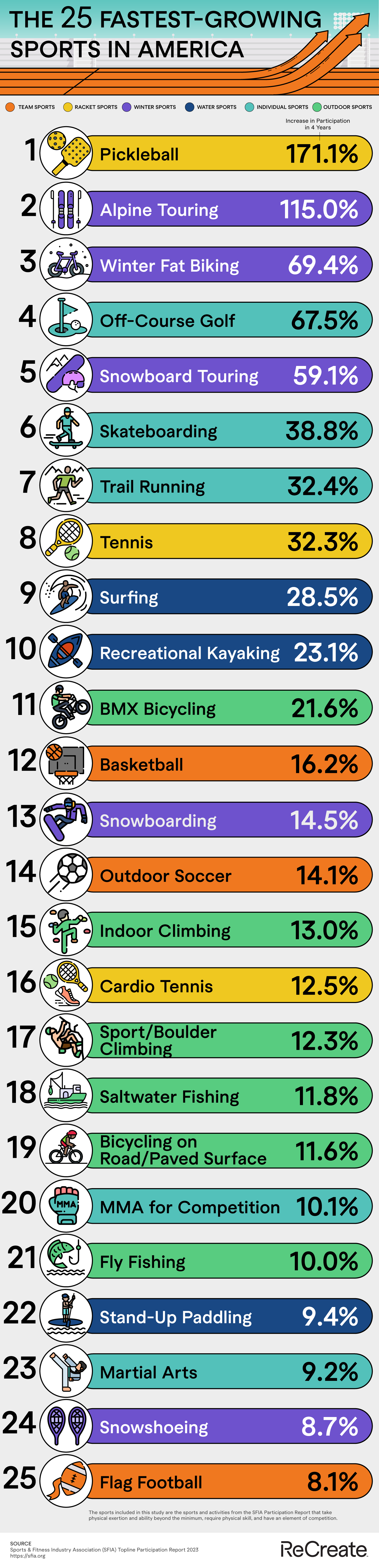 The 25 Fastest-Growing Sports in America - ReCreateYou.com CBD - Infographic