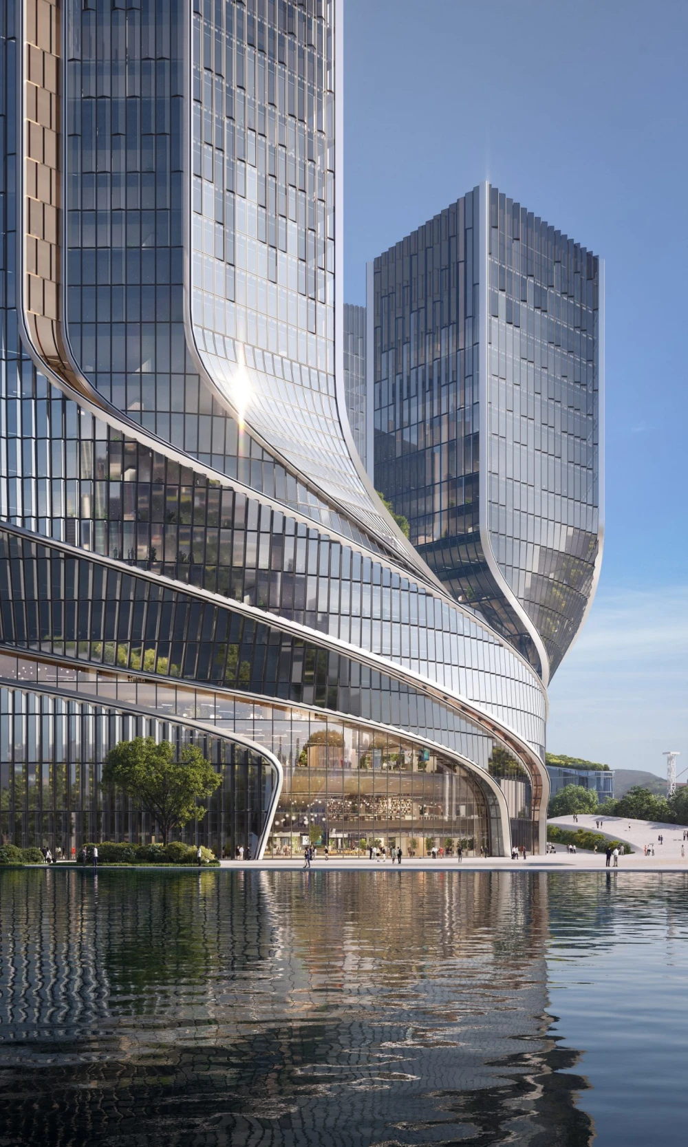 ์ฒธํ์ด ๋ฒ ์ด(Qianhai Bay)์ ๋์ ๋ถ์ง์ ๋ค์ด์ค ํ ์ผํธ ํฌ๋ฆญ์ค๋ ์ต๊ณ ๋์ด 153m์ ๋น๋ฉ์ ๋น๋กฏํด ๋ค ๊ฐ์ ๋์ด๊ฐ ๋ค๋ฅธ ๋น๋ฉ์ ํ๋๋ก ๋๊ปด์ง๊ฒ ์ฐ์ํ๊ฒ ๋นํผ ํ๋จ๋ถ๊ฐ ๋์์ธ์ด ํนํ ์ธ์์ ์ธ๋ฐ์. ๊ท๋ชจ๊ฐ ์ ํ ํํฌ์ 2๋ฐฐ์ฏค ๋ ๊ฑฐ๋ผ๊ณ ํ๋๊ตฐ์. ํ ์ผํธ๊ฐ ์ถ์งํ๋ ๋ฏธ๋ ๊ธฐ์ ๊ณผ ๊ธ์ต์ ์ค์ฌ์ง๋ก ๊ฐ๊ฐ์ด์ง๋ง, ํ๋๋ก ์์ง๋ ฅ ์๊ฒ ์๋์ง๋ฅผ ๋ฐํํ๊ธธ ๋ฐ๋ผ๋ฉฐ ๊ตฌ์ฑํ ๋๋์ด๋๊น์?