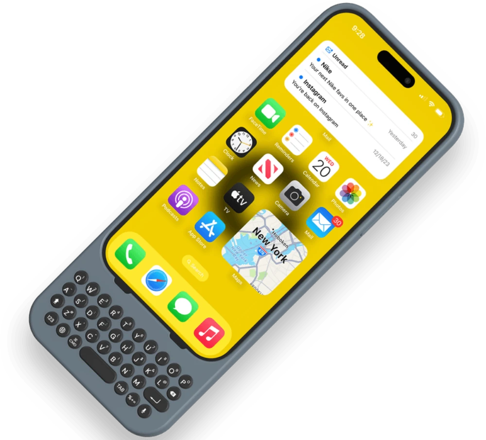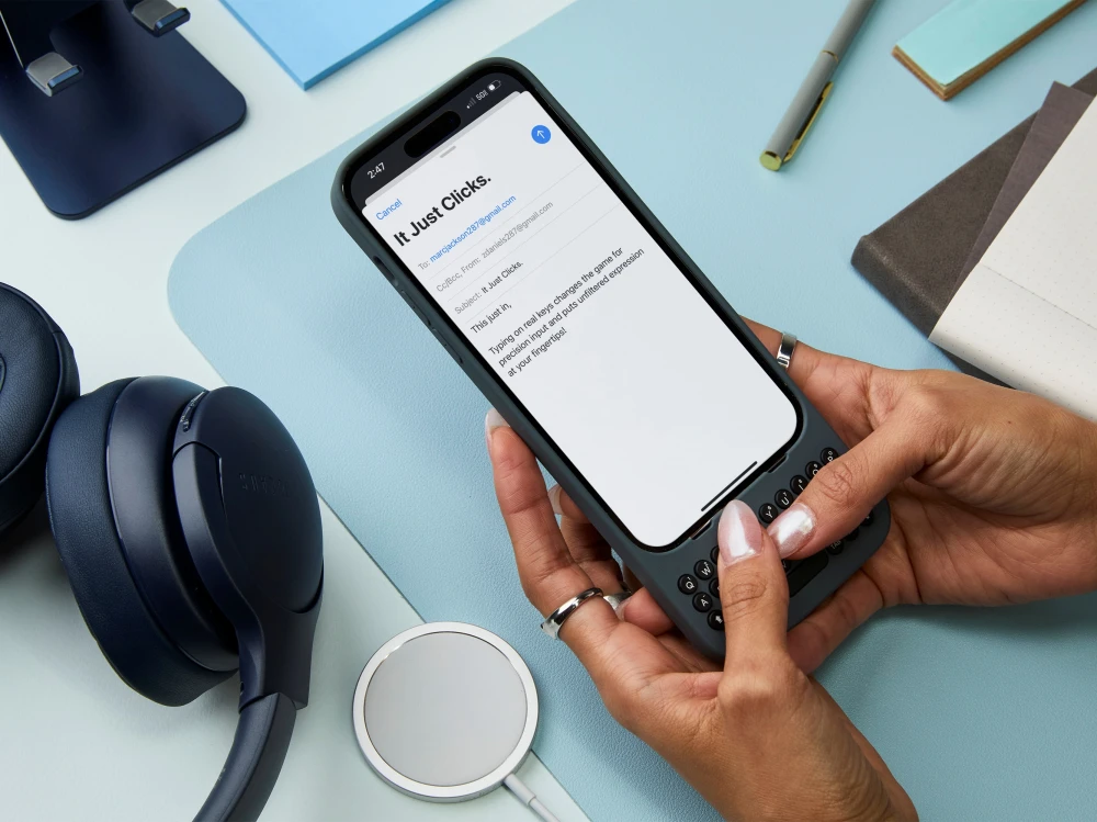 Clicks brings a REAL KEYBOARD to your iPhone. Enjoy the feel of buttons, type with precision and double your space to create. Available now. Ships worldwide.