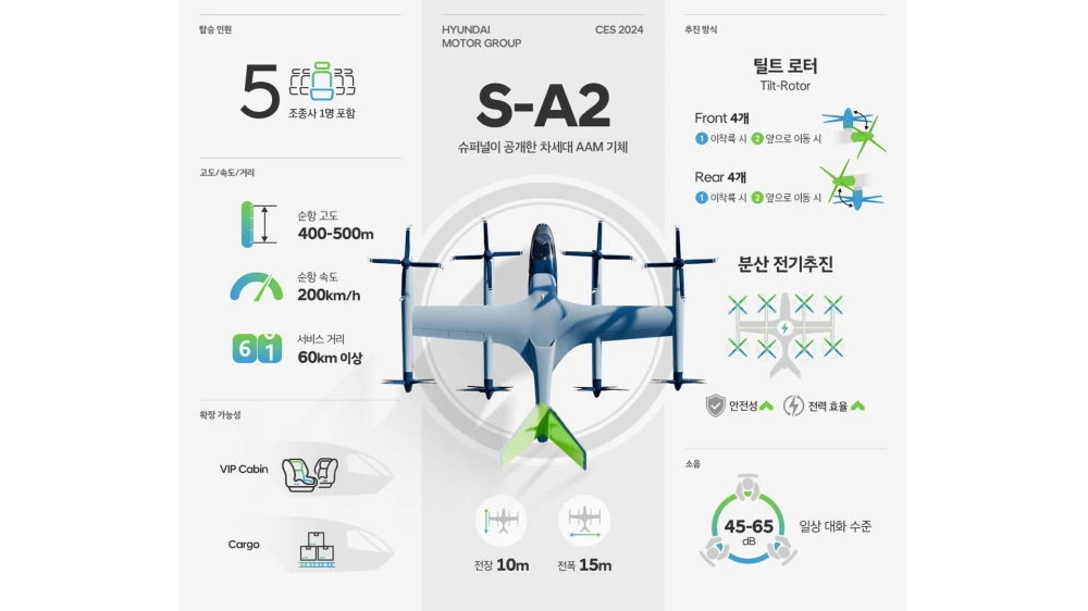 ํ๋์๋์ฐจ๊ทธ๋ฃน ์ํผ๋, CES 2024์์ ์ฐจ์ธ๋ AAM ๊ธฐ์ฒด ใS-A2ใ ์ฒซ ๊ณต๊ฐ