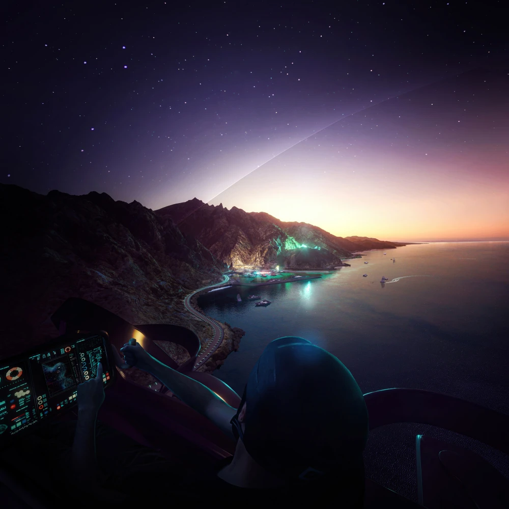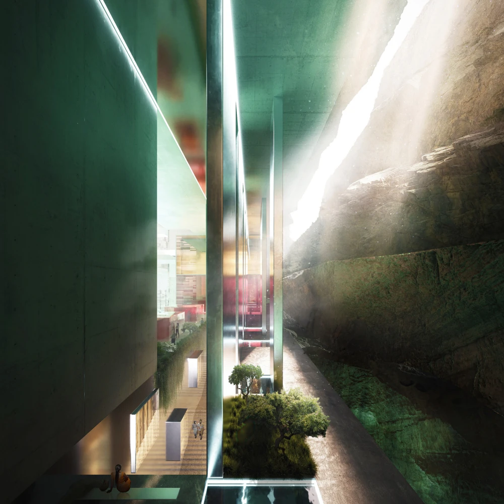 Explore Aquellum, a visionary subterranean digitalized community seamlessly integrated into a 450-meter-high mountain range along the Gulf of Aqaba.