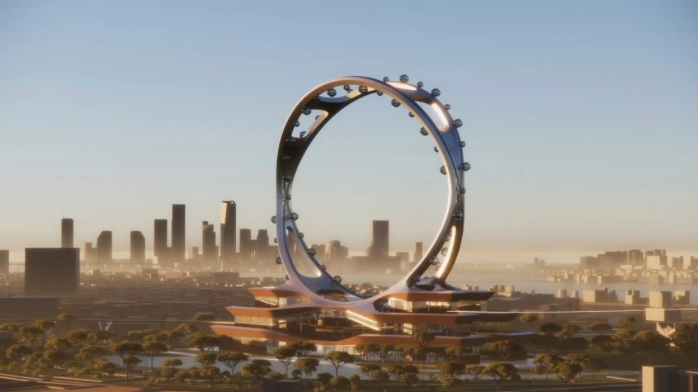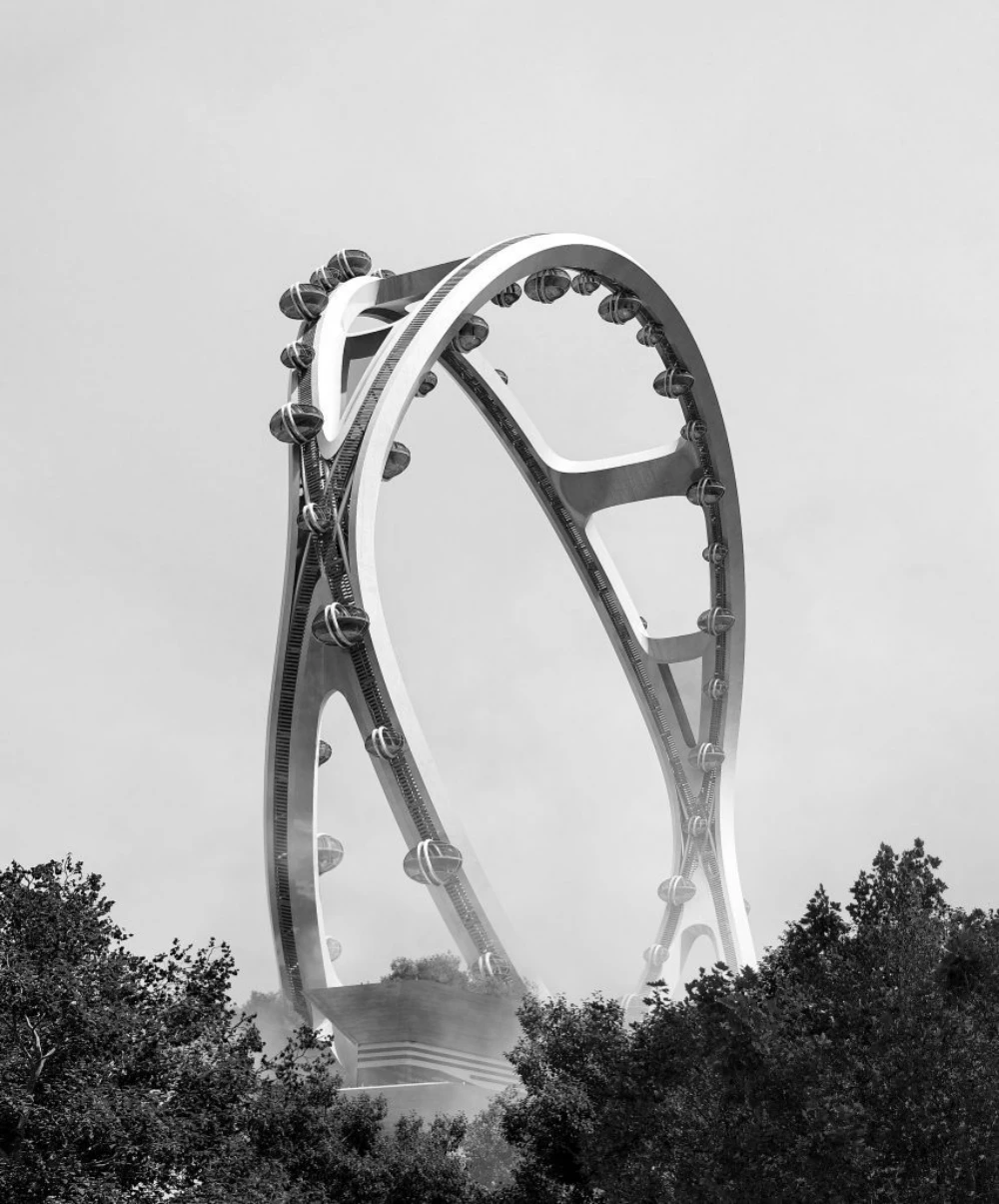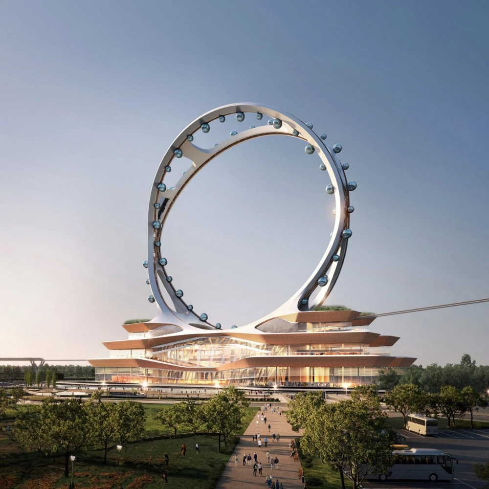 Dutch firm UNStudio has revealed its design for a 220-metre-high Ferris wheel in Seoul, consisting of an intersecting double-ring structure perched atop a 40-metre-high cultural complex.