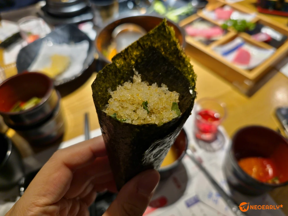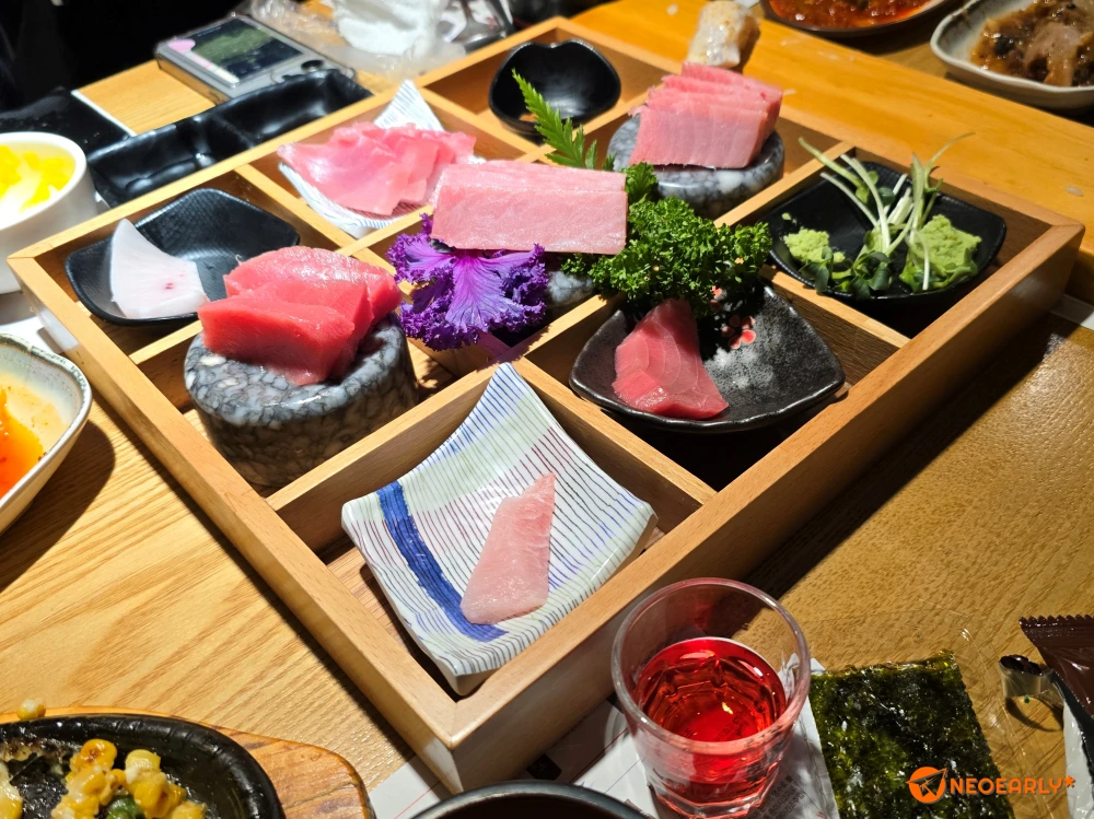 ์ผํ(์ธ๋น 59,000์) ๋ฉ๋ด๋ฅผ ์ฃผ๋ฌธํ๋ ํธ๋ฐ์ฃฝ๊ณผ ์ฅ๊ตญ์ ์์์ผ๋ก ๋ฉ๋ด๊ฐ ๋์ค๊ธฐ ์์ํฉ๋๋ค. ๋ถ์๋ณ๋ก ์๋ ๋ง๋ ๋ชจ์๋ ๋ค๋ฅธ ์ฐธ์น๊ฐ 9์นธ์ผ๋ก ๋๋ ํธ๋ ์ด์ ๋์๊ณ , ์์๋ ์ด๋ฐฅ๊ณผ ์ฝ์น์ฆ, ๋ฌด์กฐ๋ฆผ ๋ฑ์ด ๊ทธ๋ฆฌ ๋์ง ์์ ํ