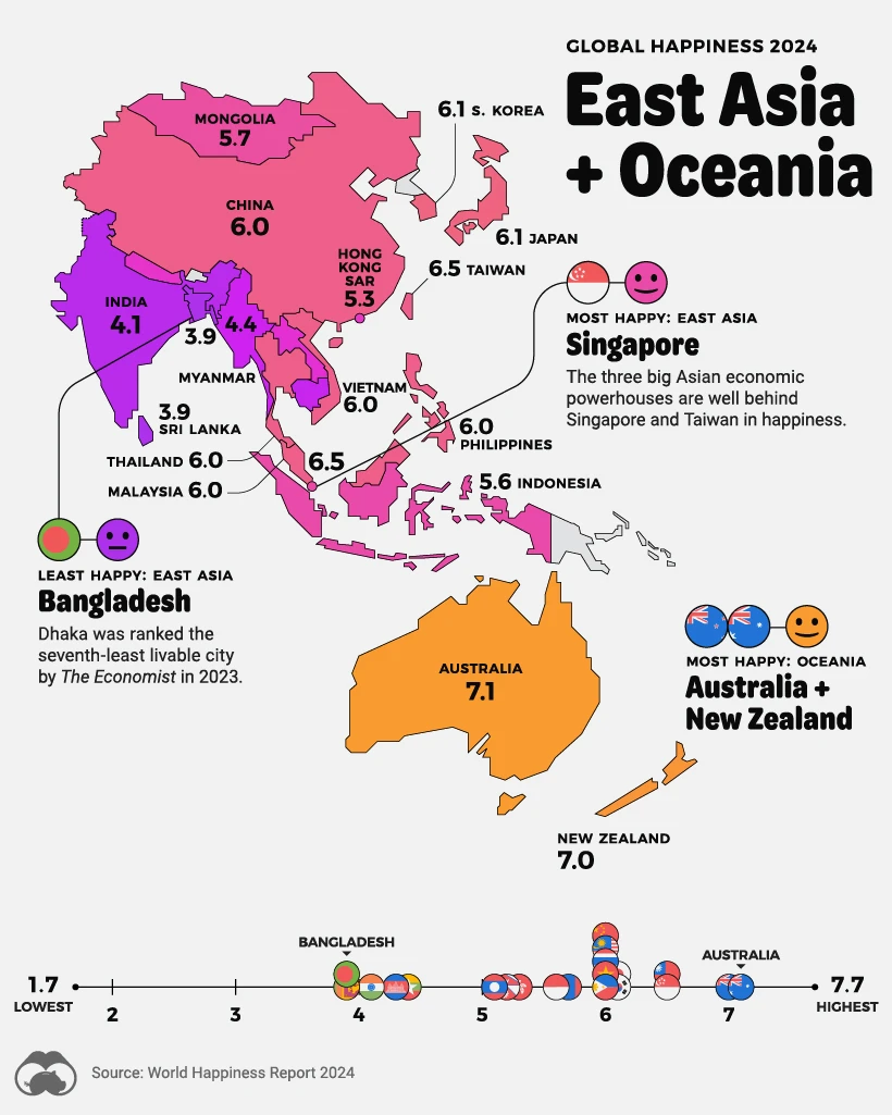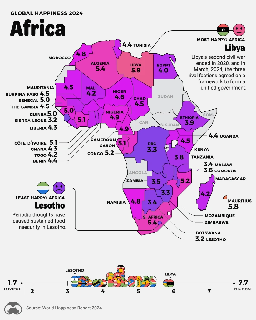 A Map of Global Happiness By Country in 2024