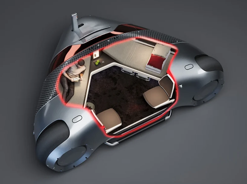 Swift-Pod ist ein futuristisches, autonomes Mobilitätskonzept für Übernachtreisen im Individualverkehr entwickelt von xoio