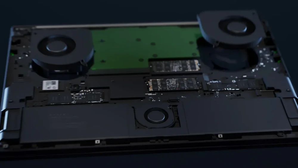 μ΅λ 4K ν΄μλμ 200Hz μ£Όμ¬μ¨μ μ§μνλ 18μΈμΉ λμ€νλ μ΄λ₯Ό μΈκ³ μ΅μ΄λ‘ μ μ©νκ³ , 14μΈλ μΈν μ½μ΄ i9-14900HX νλ‘μΈμμ μλΉλμ μ§ν¬μ€ RTX 4090, 64GB λ¨, 4TB SSD, μμ΄νμ΄ 7, λΈλ£¨ν¬μ€ 5.4, μ¬λλ³ΌνΈ 5, 500λ§ νμ μΉμΊ , μ¬λλ³ΌνΈ 5λ₯Ό ν¬ν¨ν λ€μν λ¨μλ₯Ό μ 곡νκ³ μμ΅λλ€. λ°°ν°λ¦¬λ 91.7Whrκ³ λΆνΌμ 무κ²λ₯Ό μ€μΈ GaN μΆ©μ κΈ°λ₯Ό μ 곡νλ λ²½λ μ΄λν°κ° μλλΌλ₯Έ κ²λ§μΌλ‘λ λ§€λ ₯μ μ΄κΈ΄ νλλΌκ³ μ.