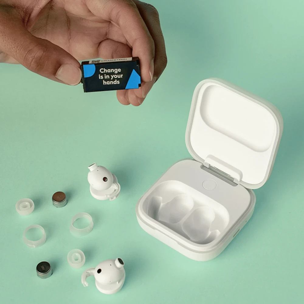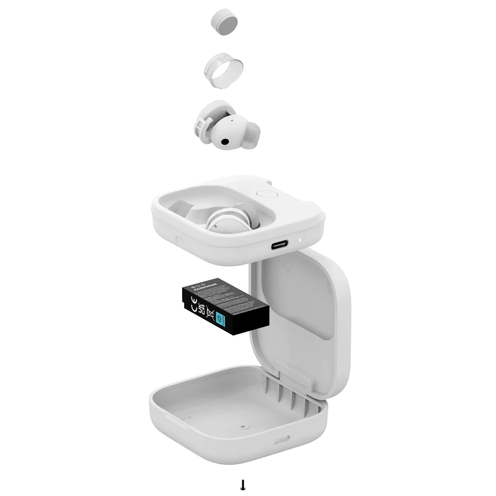 Meet the world's most repairable premium earbuds. Replaceable batteries inside buds and charging case.