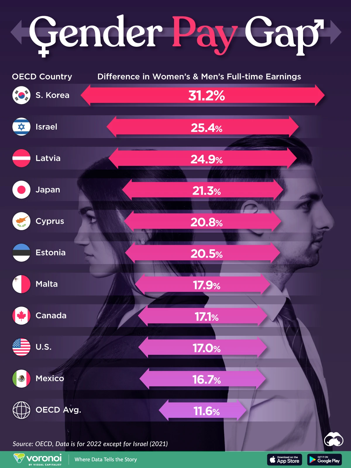 The Largest Gender Pay Gaps in OECD Countries