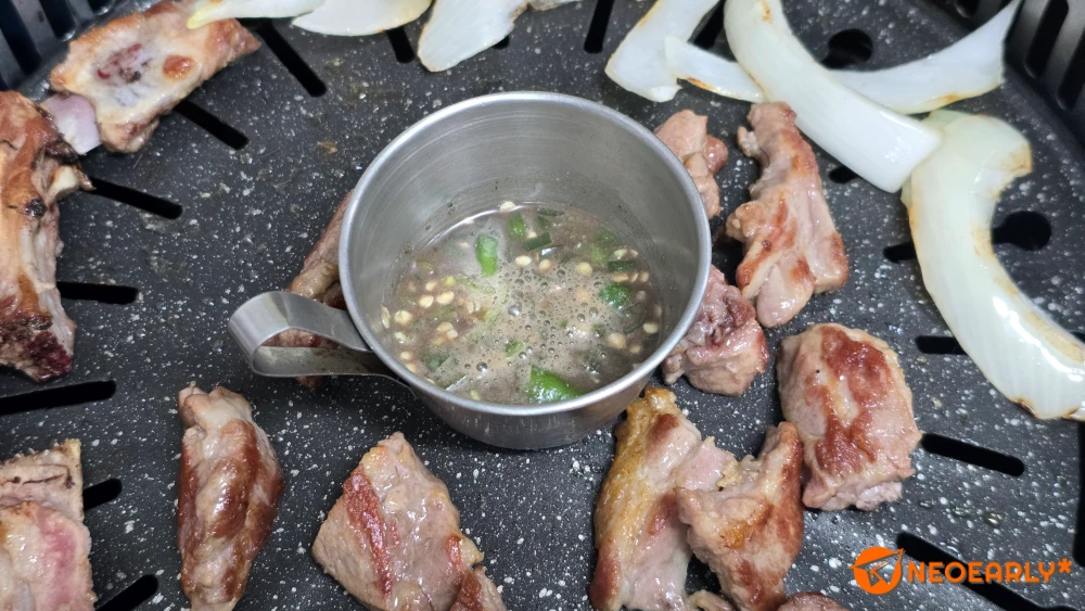 ์ ์ํ ๊ณ ๊ธฐ๊ฐ ๋์๋๋ฐ ์๊ฐ๋น์ฒ๋ผ ๋ผ๊ฐ ๋ถ์ด์๋ ๊ณ ๊ธฐ๋ผ ๋ณผ๋ฅจ๊ฐ์ด ์๋๊ตฐ์. ๊ฐ์ด๋ฐ ์ ์ง๋ผ๋ฅผ ์ฌ์ด์ ๋๊ณ ์์ชฝ์ ๊ณ ๊ธฐ๊ฐ ๋ถ์ ํํ์ธ๋ฐ ๋ถ์ ์ด๋ฆ์ ๋ฏ์ค์ง๋ง, ๋จน๋ ๋ฐฉ์์ ์ผ๋ฐ์ ์ธ ๋ผ์ง๊ณ ๊ธฐ๋ฅผ ๋ถํ์ ๊ตฌ์ ๋จน๋ ๊ฒ๊ณผ ๊ฐ์์ต๋๋ค.