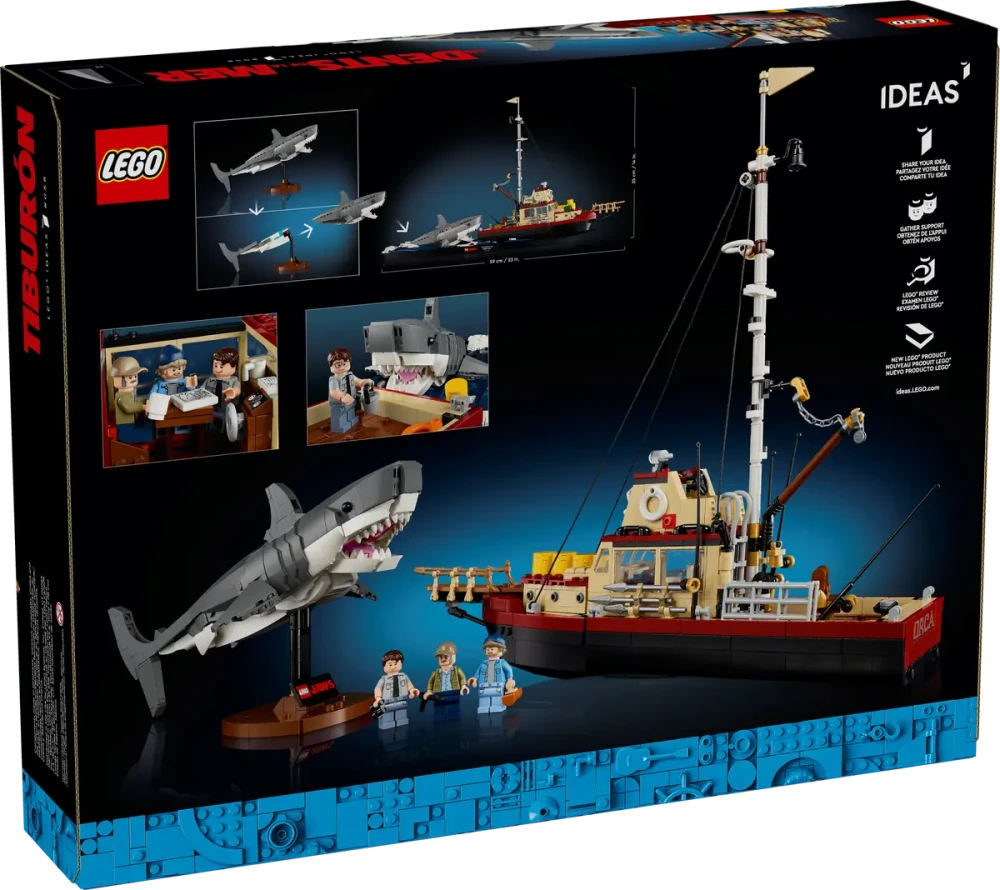 λ κ³ μμ΄λμ΄(LEGO IDEAS)λ‘ λ±μ₯νλ μ£ μ€(Jaws/#21350)λ 1,497κ°μ νΌμ€λ‘ μ΄λ€μ§ μΈνΈμ΄λ©° μνμ μ£ΌμμΈ κ²½μ°° μμ₯ λ§ν΄, ν΄μ μλ¬Όνμ ννΌ, μμ΄ μ¬λ₯κΎΌ νΈνΈμ μΈ λ―ΈλνΌκ²¨μ λΈλ£¨μ€λΌ λΆλ¦¬λ κ±°λν λ°±μμ리. κ·Έλ¦¬κ³ λ°±μμ리μ λ§μ λ°λ€μμ ν¬λ₯Ό λ²μλ νΈνΈ μ μ₯μ λ°° μ€λ₯΄μΉ΄λ‘ ꡬμ±λμ΄ μμ΄ μνμ ν μ₯λ©΄ κ°μ λμ€λΌλ§λ₯Ό ꡬνν μ μλλ°μ.
