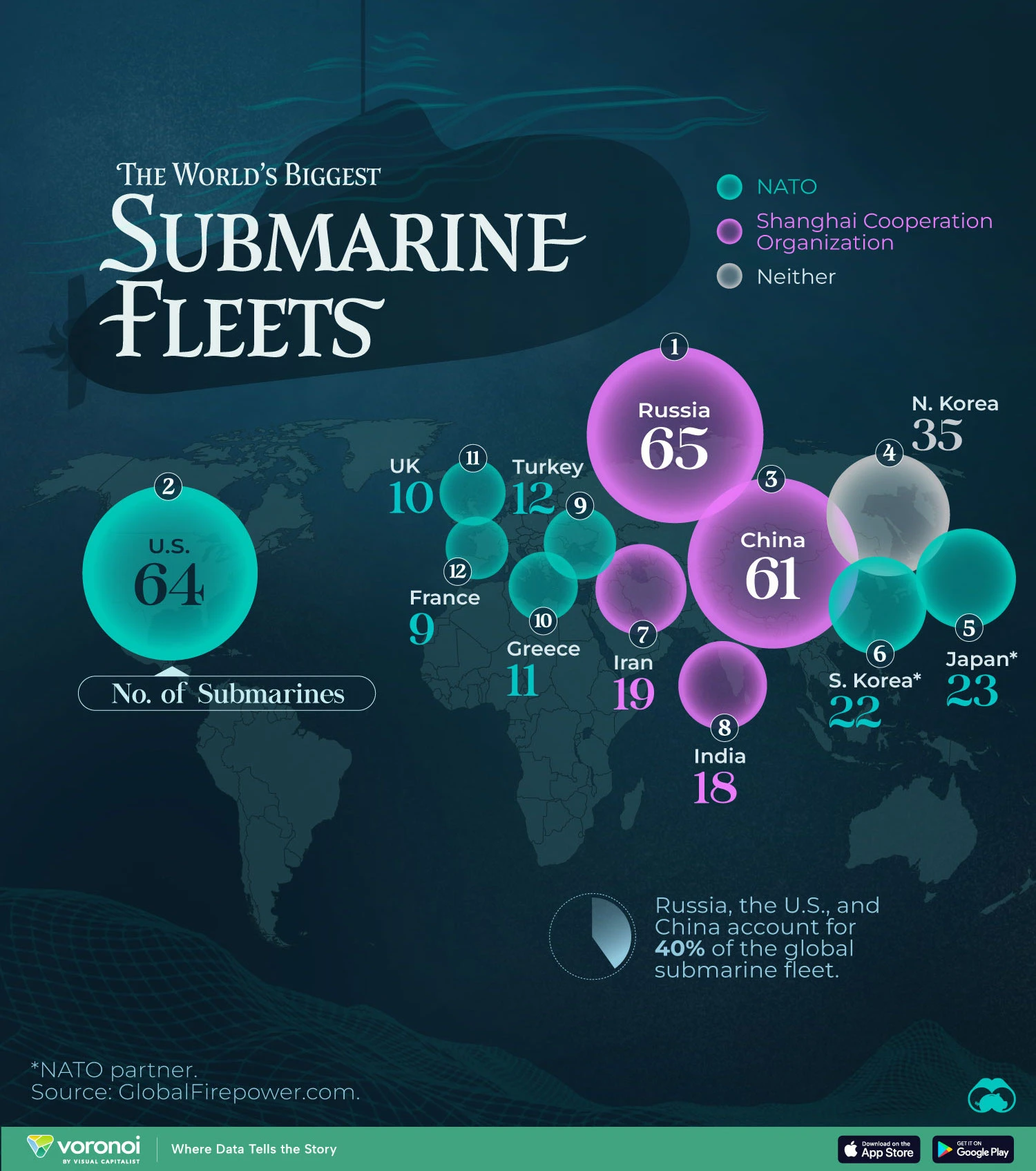 Russia, the U.S., and China Account for 40% of Global Submarine Fleets