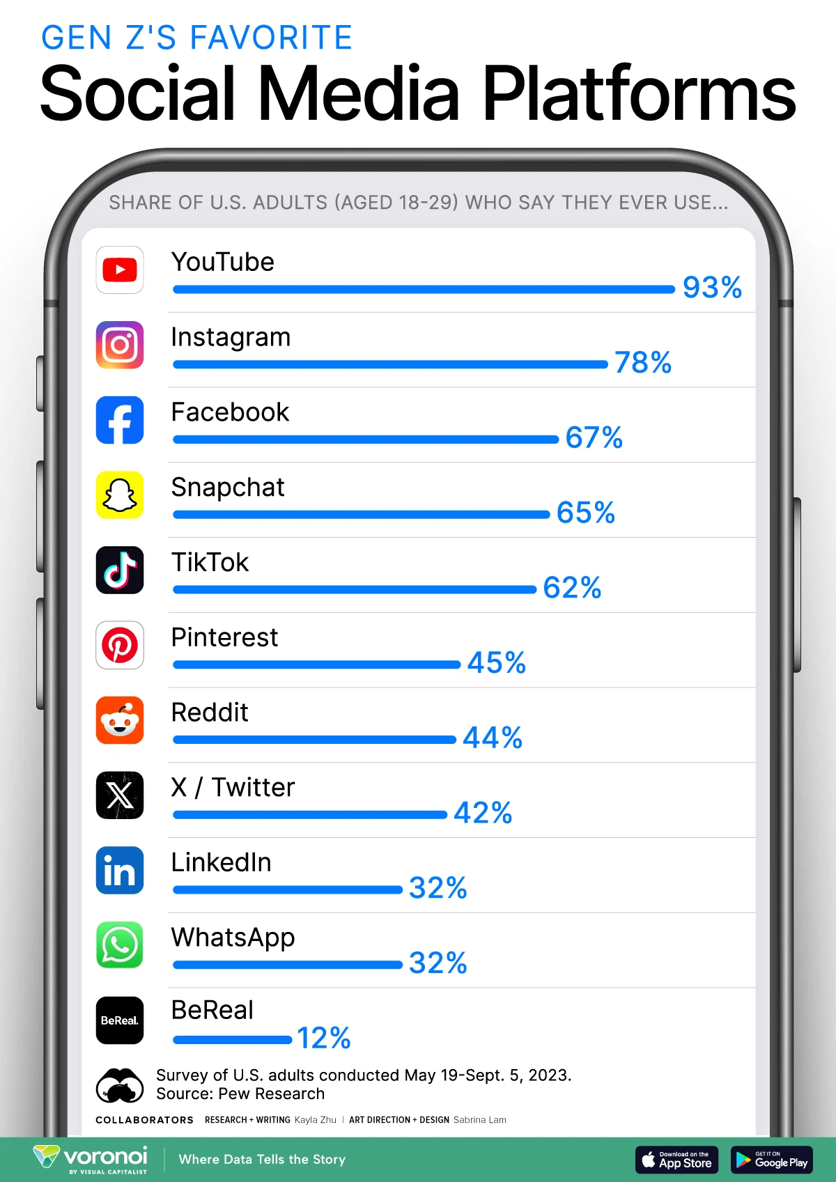 2023 ๋ฏธ๊ตญ Z์ธ๋๊ฐ ๊ฐ์ฅ ์ข์ํ๋ ์์ ๋ฏธ๋์ด by voronoiapp.com๏ปฟ