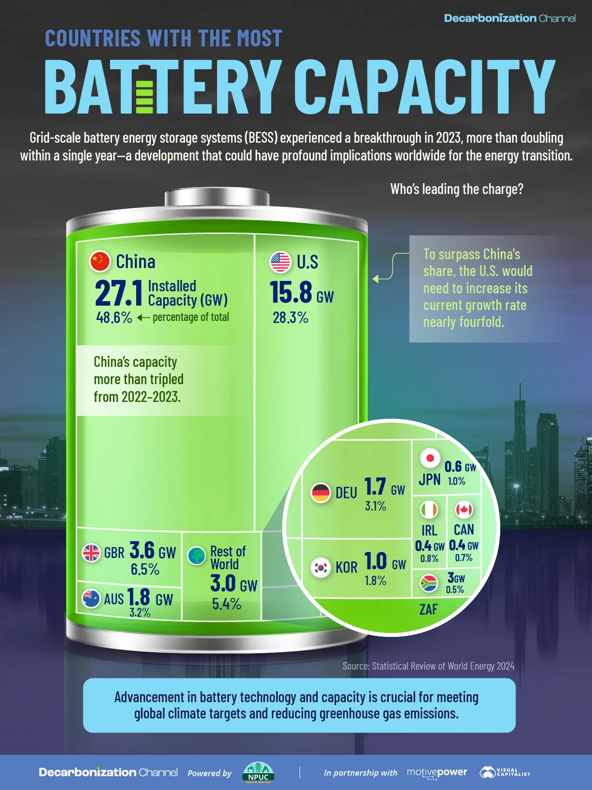 ์์ง 1,300GW๋ผ๋ ๋ชฉํ์ ๋ฟ๊ธฐ์ ๋งค์ฐ ๋ถ์กฑํ ์์ค์ด์ง๋ง, ์ค๊ตญ๊ณผ ๋ฏธ๊ตญ์ ๋ฌผ๋ก ํธ์ฃผ์ ์ ๋ฝ ๊ตญ๊ฐ๋ค์ด ๋ฐฐํฐ๋ฆฌ ์๋์ง ์ ์ฅ ์์คํ
