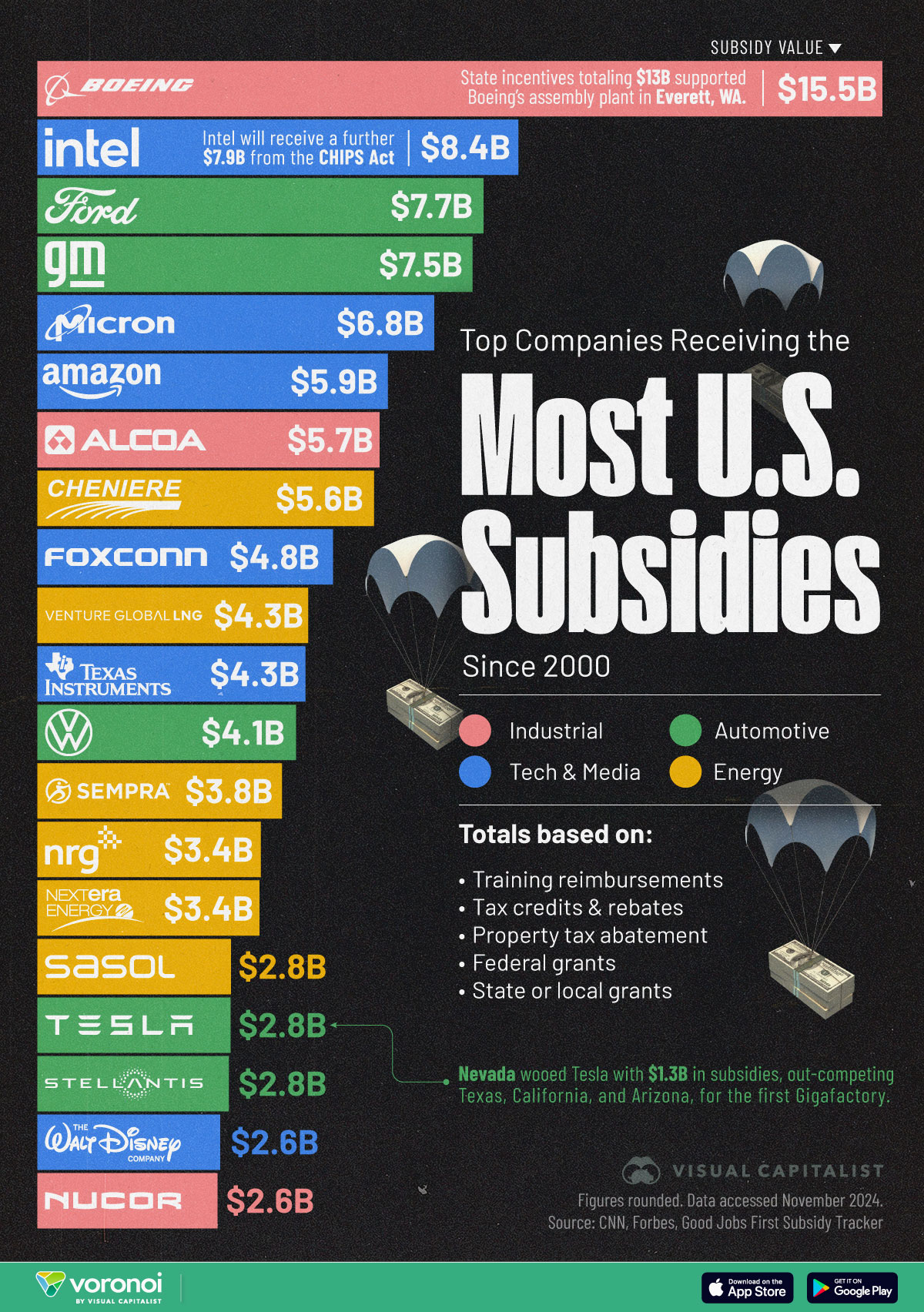 What We’re Showing: This chart visualizes the companies which have received the most U.S. government subsidies since the year 2000. โน๏ธ Subsidies can take th…