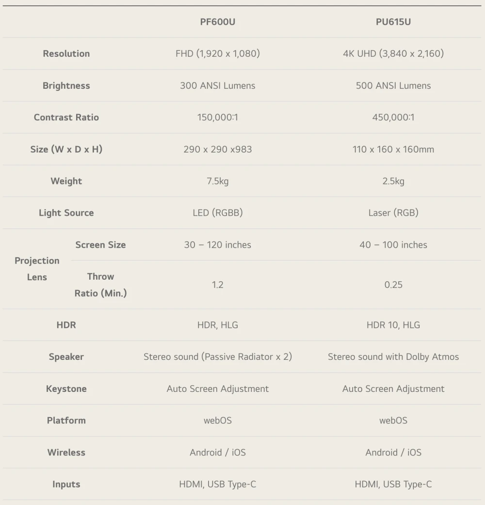 3-in-1 ํ๋ก์ ํฐ PF600U๋ LG ์๋ค๋น ํ๋ธ ๊ฐ์ ์ด๋ฆ์ด ์์ง ๋ถ์ด ์์ง ์๋ค๋ ๊ฒ ์ด์ง ์์ํ์ง๋ง, ๋ผ์ดํ์คํ์ผ ํ๋ก์ ํฐ ๋ผ์ธ์