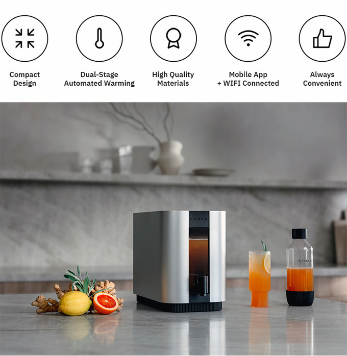 A better way to brew your booch. โจ KOMBU is the first modern kombucha brewer. It brings kombucha into the 21st century with an efficient, compact, and connected device. KOMBU makes it easy to brew great kombucha at home. Pre-orders expected to ship in Ju