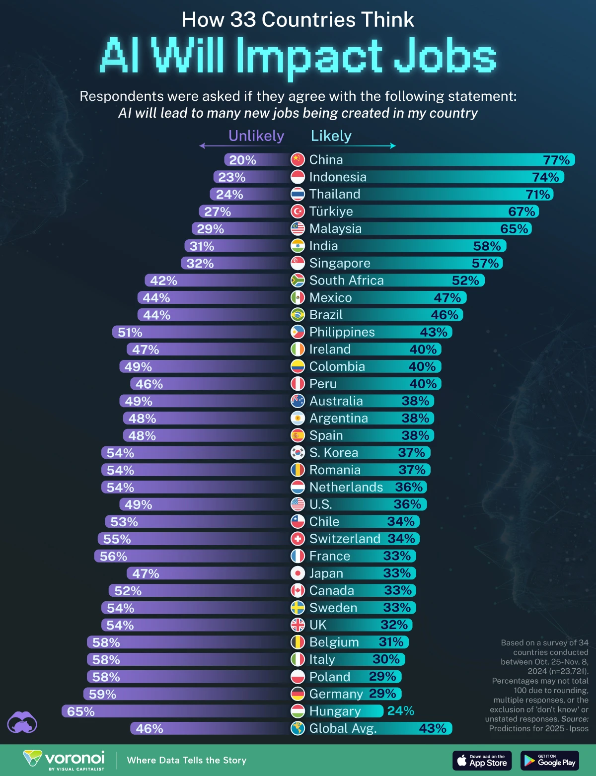 What We’re Showing: The results of a survey conducted by Ipsos asking people if artificial intelligence will lead to many new jobs being created in thei…