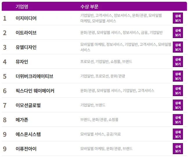 ๋๊ฒ ๊ตญ๋ด ์ฐ์ ์ธํฐ๋ท ์๋น์ค๋ฅผ ์ ์ ํ๊ณ ์์ํด ์จ ์์ด์ด์์ฆ(i-AWARDS)์๋ ์น ์ด์๋ ์ฝ๋ฆฌ์(WEB AWARD KOREA), ์ค๋งํธ ์ฑ ์ด์๋(SMART APP AWARD), ์์