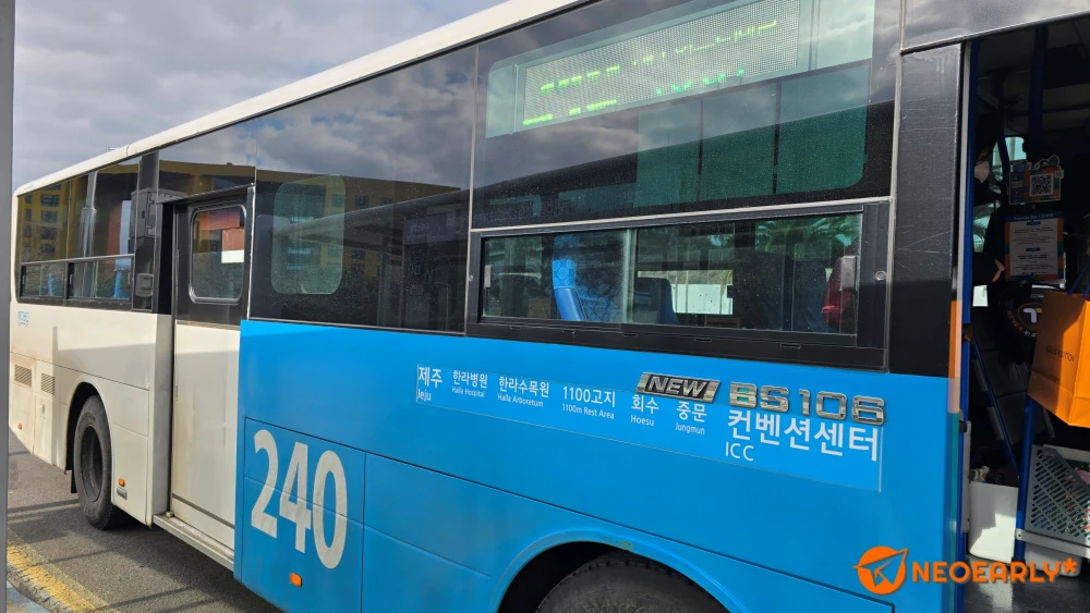 ์ ์ฃผ 240๋ฒ ๋ฒ์ค, ํ๋ผ์ฐ 1100๊ณ ์ง ํด๊ฒ์ ๋๊ฝ ๊ตฌ๊ฒฝํ๋ฌ ๋ฒ์ค ํ์ด์