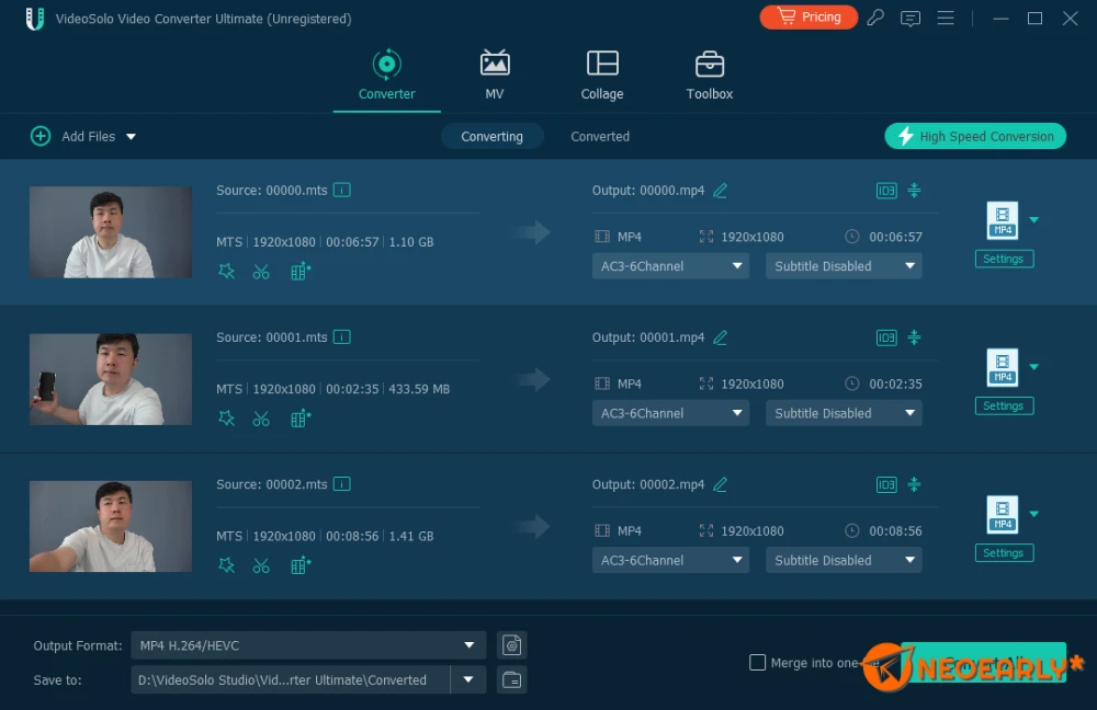 VideSolo offers seamless conversion for videos, audio, and images. With support for over 300 formats, including popular ones like MP4, AVI, MKV, and MOV, it ensures broad compatibility. Additionally, it provides fine-tuning options for output parameters, a