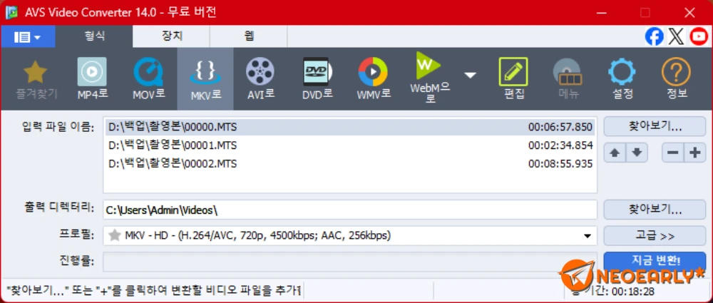 Windows์ฉ AVS ๋ฌด๋ฃ ๋์์ ๋ณํ๊ธฐ๋ก ๋์์์ ๋ณํํ์ธ์