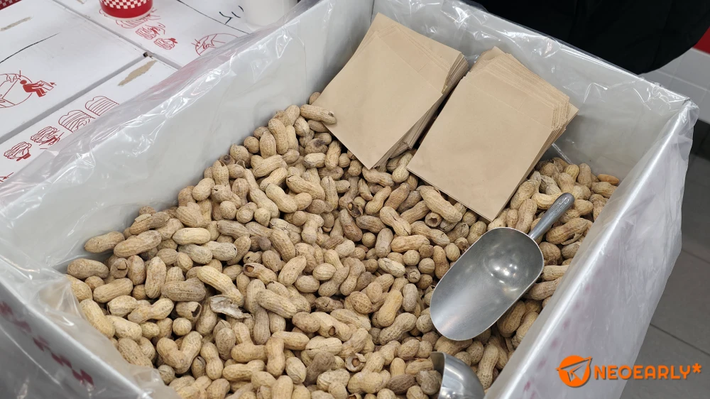 ๊ทธ๋Ÿฐ ์ƒํ™ฉ์—์„œ ์ œ ์„ ํƒ์€ ๋ฒ ์ด์ปจ ์น˜์ฆˆ๋ฒ„๊ฑฐ(17,400์›)์— ์˜ฌ ๋” ์›จ์ด, ํŒŒ์ด๋ธŒ๊ฐ€์ด์ฆˆ ์…ฐ์ดํฌ(8,900์›)์—๋Š” ํ”ผ๋„› ๋ฒ„ํ„ฐ๋ฅผ ๋„ฃ์–ด๋ดค์Šต๋‹ˆ๋‹ค. ๊ทธ๋ฆฌ๊ณ  ํ”„๋ผ์ด๋Š” ๋ผ์ง€ ์‚ฌ์ด์ฆˆ(10,900์›)๋กœ ์ฃผ๋ฌธํ–ˆ๋Š”๋ฐ ์„ฑ์ธ ๋‚จ์„ฑ 5๋ช…์ด ๋จน๊ธฐ์—๋„ ๋ผ์ง€ ์‚ฌ์ด์ฆˆ ํ”„๋ผ์ด 1๊ฐœ๊ฐ€ ๋ถ€์กฑํ•˜์ง€ ์•Š๋”๋ผ๊ณ ์š”.;; ๋ฒ„๊ฑฐ๋Š” ๋น„์‹ผ๋ฐ ํ”„๋ผ์ด๋Š” ์‹ธ๊ฒŒ ๋А๊ปด์ง€๋Š” ๋ฌ˜ํ•œ ๊ฐ€๊ฒŒ์˜€์–ด์š”. ์ฐธ๊ณ ๋กœ ์ด๋‚ ์€ ๊ฐ•์›๋„ ํ‰์ฐฝ์—์„œ ์˜จ ๊ฐ์ž๋กœ ํŠ€๊ฒจ๋‚ธ ํ”„๋ผ์ด๊ฐ€ ๋‚˜์™”๊ณ  ์ด๊ณณ์€ ๋•…์ฝฉ๊ธฐ๋ฆ„์— ํŠ€๊ธด ์ผ€์ด์ค€ ์Šคํƒ€์ผ ํ”„๋ผ์ด๋ฅผ ๋‚ด๋Š”๋ฐ ์ œ๋ฒ• ์งœ์ง€๋งŒ, ๋˜ ์งœ์„œ ์†์ด ๊ฐ‘๋‹ˆ๋‹ค.ใ…Ž ์ฃผ๋ฌธ์„ ๋งˆ์นœ ํ›„ ์Œ์‹์ด ๋‚˜์˜ค๊ธธ ๊ธฐ๋‹ค๋ฆฌ๋Š” ์‹œ๊ฐ„. ๋ฌด๋ฃŒ๋กœ ์ œ๊ณต๋˜๋Š” ๊ฑธ๋กœ ์œ ๋ช…ํ•œ ํŒŒ์ด๋ธŒ๊ฐ€์ด์ฆˆ์˜ ๋•…์ฝฉ์„ ์ข…์ด๋ด‰ํˆฌ์— ๋‹ด์•„๋ด…๋‹ˆ๋‹ค. ๊ฒ‰๊ป์งˆ๊นŒ์ง€ ์žˆ๋Š” ์ด ๋•…์ฝฉ์€ ์–ผํ• ๋ณด๋ฉด ์ƒ๋•…์ฝฉ ๊ฐ™์ง€๋งŒ, ์ด๋ฏธ ์ž˜ ๋ณถ์•„์ ธ ์žˆ๋Š” ๋ฐ๋‹ค ๊ฝค ์งœ๊ธฐ๋„ ํ•ด๋„ ํฅ๋ฏธ๋กญ๋”๋ผ๊ณ ์š”. ์‹ฌ์‹ฌํ•˜๋ฉด ์†์ด ๊ฐˆ ์ •๋„์˜ ๋งค๋ ฅ์€ ์žˆ์–ด ๋ณด์˜€์–ด์š”. ์ €๋„ ๋‹ด์•˜๋˜ ๋•…์ฝฉ์„ ์‹์‚ฌ ์ค‘์— ๋จน์ง€ ์•Š๊ณ  ์‚ฌ๋ฌด์‹ค์— ๊ฐ€์ ธ์™€์„œ ๋จน์—ˆ๋Š”๋ฐ ๊ณ„์† ์†์ด ๊ฐ€๋˜...
