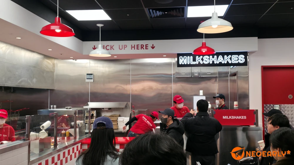 ๋ฏธ๊ตญ์ ํ๋ฒ๊ฑฐ์ ๋๋ผ์ ๋๋ค. ํ๋ฒ๊ฑฐ์ ์ ๋ ์์ฒด๊ฐ ํจ๋ถ๋ฅดํฌ์ ์คํ ์ดํฌ๋ฅผ ํจํฐ๋ก ๋ฃ์ ์๋์์น์์ผ๋ ๋ฏธ๊ตญ๋ง์ ์์์ด๋ผ๊ณ ๋งํ๊ธด ์ด๋ ต์ง๋ง, ํ๋ฒ๊ฑฐ์ ์ผ์ํ, ์ธ๊ณํ๋ ๋จ์ฐ ๋ฏธ๊ตญ์ ํ์ด์๊ณ ๋งฅ๋๋ ๋ ๊ฐ์ ๋ฏธ๊ตญ ํ๋์ฐจ์ด์ฆ๊ฐ ๊ทธ ์ค์ฌ์ ์๋๋ฐ์. ์ต๊ทผ์ ๋ฏธ๊ตญ์์ ์ ๋ช ํ ํ๋ฒ๊ฑฐ ํ๋์ฐจ์ด์ฆ๋ค์ด ํ๊ตญ์ ์์ ๋ค์ด์ค๊ณ ์์ต๋๋ค. ์ด์ ์ ๋ฒ ์๋ฆฌ๋ฅผ ์ก์ ๋ฏํ ์์ดํฌ์๋ ์๊ณ ์ด๋ฒ์ ์๊ฐํ๋ ค๋ ํ์ด๋ธ๊ฐ์ด์ฆ(FIVE GUYS)๋ ์์ฃ . 1986๋ ์ ์์ํ์ผ๋ ๋น๊ต์ ์ ์ ๋ธ๋๋์ธ ํ์ด๋ธ๊ฐ์ด์ฆ๋ ๋จธ๋ ๋ถ๋ถ๊ฐ ๋ง๋ ๊ฐ๊ฒ๋ก ์๋ฒ์ง์ ๋ค ์๋ค์ด ์ด์ํ๋ค๋ ์๋ฏธ๋ก ํ์ด๋ธ ๊ฐ์ด์ฆ๋ผ๋ ์ด๋ฆ์ด ๋ถ์๋ค๊ฐ ๋ง๋ด๊ฐ ํ์ด๋ ๋ค์ฏ ํ์ ์ ๊ฐ๊ฒ๋ผ๋ ์๋ฏธ๋ก ๋ฐ๋์๋ค๊ณ ํ๋๊ตฐ์.