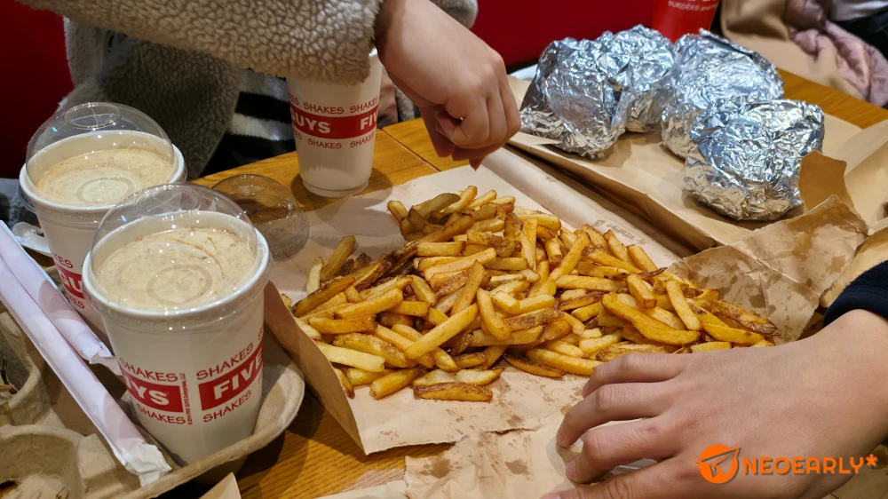 ๋ฏธ๊ตญ์€ ํ–„๋ฒ„๊ฑฐ์˜ ๋‚˜๋ผ์ž…๋‹ˆ๋‹ค. ํ–„๋ฒ„๊ฑฐ์˜ ์œ ๋ž˜ ์ž์ฒด๊ฐ€ ํ•จ๋ถ€๋ฅดํฌ์‹ ์Šคํ…Œ์ดํฌ๋ฅผ ํŒจํ‹ฐ๋กœ ๋„ฃ์€ ์ƒŒ๋“œ์œ„์น˜์˜€์œผ๋‹ˆ ๋ฏธ๊ตญ๋งŒ์˜ ์Œ์‹์ด๋ผ๊ณ  ๋งํ•˜๊ธด ์–ด๋ ต์ง€๋งŒ, ํ–„๋ฒ„๊ฑฐ์˜ ์ผ์ƒํ™”, ์„ธ๊ณ„ํ™”๋Š” ๋‹จ์—ฐ ๋ฏธ๊ตญ์˜ ํž˜์ด์—ˆ๊ณ  ๋งฅ๋„๋‚ ๋“œ ๊ฐ™์€ ๋ฏธ๊ตญ ํ”„๋žœ์ฐจ์ด์ฆˆ๊ฐ€ ๊ทธ ์ค‘์‹ฌ์— ์žˆ๋Š”๋ฐ์š”. ์ตœ๊ทผ์—” ๋ฏธ๊ตญ์—์„œ ์œ ๋ช…ํ•œ ํ–„๋ฒ„๊ฑฐ ํ”„๋žœ์ฐจ์ด์ฆˆ๋“ค์ด ํ•œ๊ตญ์— ์†์† ๋“ค์–ด์˜ค๊ณ  ์žˆ์Šต๋‹ˆ๋‹ค. ์ด์   ์ œ๋ฒ• ์ž๋ฆฌ๋ฅผ ์žก์€ ๋“ฏํ•œ ์‰์ดํฌ์‰‘๋„ ์žˆ๊ณ  ์ด๋ฒˆ์— ์†Œ๊ฐœํ•˜๋ ค๋Š” ํŒŒ์ด๋ธŒ๊ฐ€์ด์ฆˆ(FIVE GUYS)๋„ ์žˆ์ฃ . 1986๋…„์— ์‹œ์ž‘ํ–ˆ์œผ๋‹ˆ ๋น„๊ต์  ์‹ ์ƒ ๋ธŒ๋žœ๋“œ์ธ ํŒŒ์ด๋ธŒ๊ฐ€์ด์ฆˆ๋Š” ๋จธ๋  ๋ถ€๋ถ€๊ฐ€ ๋งŒ๋“  ๊ฐ€๊ฒŒ๋กœ ์•„๋ฒ„์ง€์™€ ๋„ค ์•„๋“ค์ด ์šด์˜ํ•œ๋‹ค๋Š” ์˜๋ฏธ๋กœ ํŒŒ์ด๋ธŒ ๊ฐ€์ด์ฆˆ๋ผ๋Š” ์ด๋ฆ„์ด ๋ถ™์—ˆ๋‹ค๊ฐ€ ๋ง‰๋‚ด๊ฐ€ ํƒœ์–ด๋‚˜ ๋‹ค์„ฏ ํ˜•์ œ์˜ ๊ฐ€๊ฒŒ๋ผ๋Š” ์˜๋ฏธ๋กœ ๋ฐ”๋€Œ์—ˆ๋‹ค๊ณ  ํ•˜๋”๊ตฐ์š”.