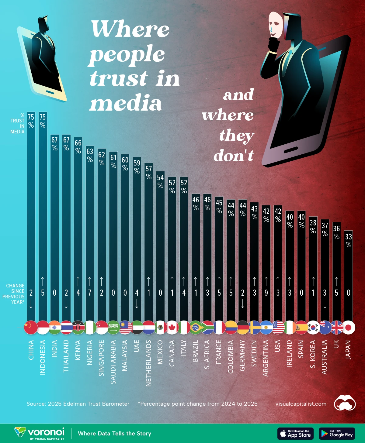 2025๋ ๊ตญ๊ฐ๋ณ ๋ฏธ๋์ด ์ ๋ขฐ ์ง์, ๋ํ๋ฏผ๊ตญ์? by voronoiapp.com