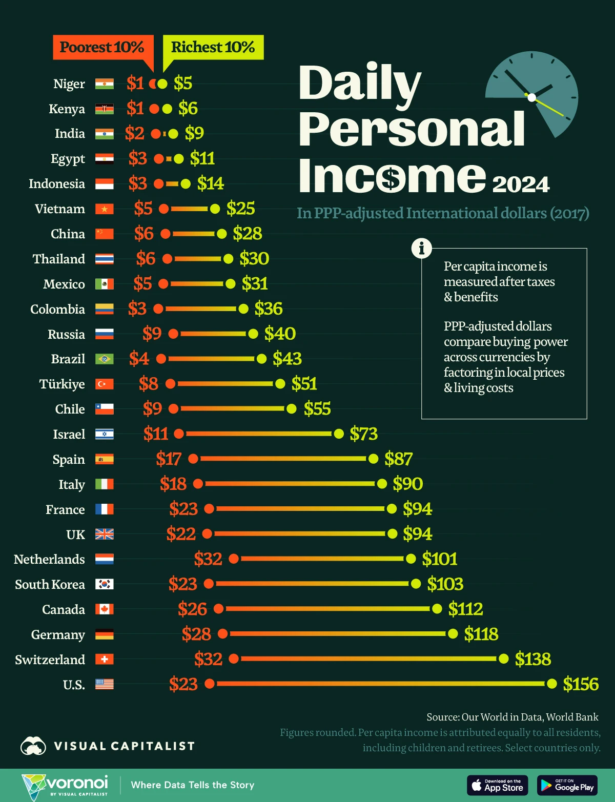 ๐ Comparing World Incomes, Adjusted for Inflation & Living Costs