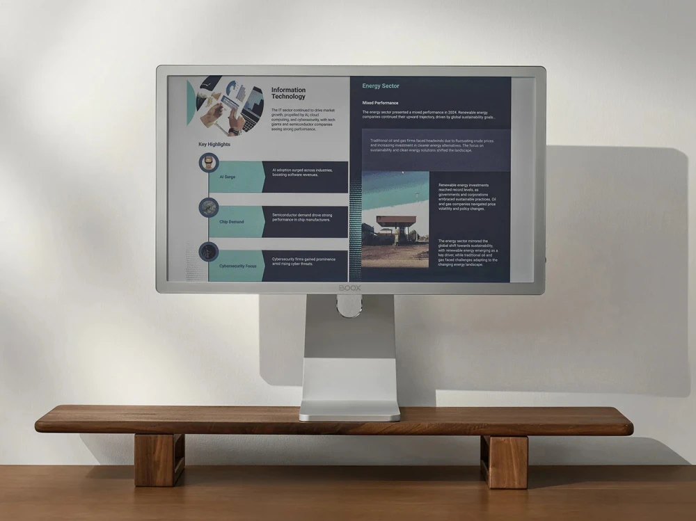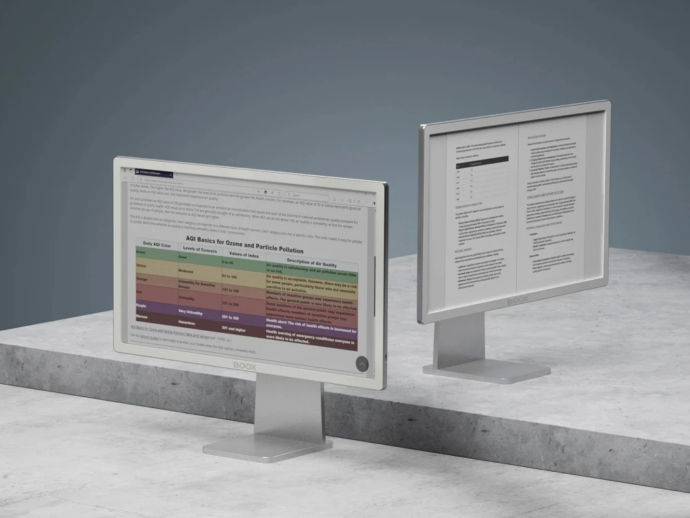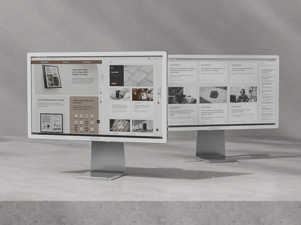 New Onyx BOOX E ink monitors come in 2 sizes, the 13.3'' Mira and 25.3'' Mira Pro, to expand your view in an eye-friendly way. Mira Pro gets front lights now. Learn more today.